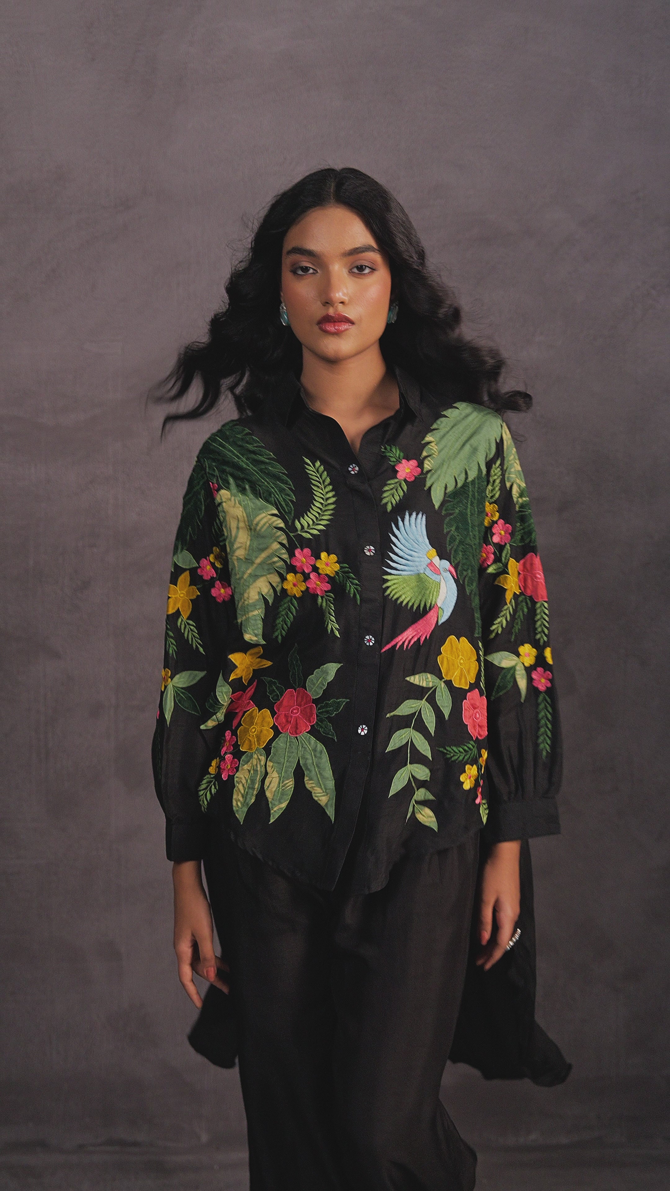 Coal Black Embroidered Raw Silk Co-Ord Set