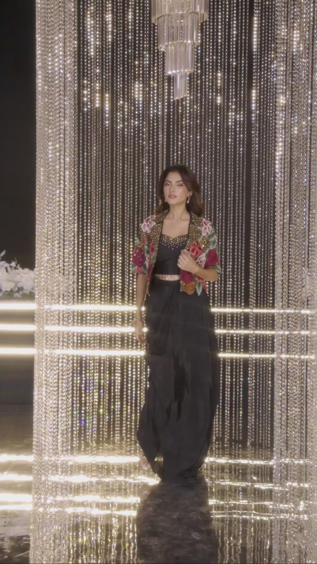 Classic Black Embellished Georgette Silk Drape Palazzo Set