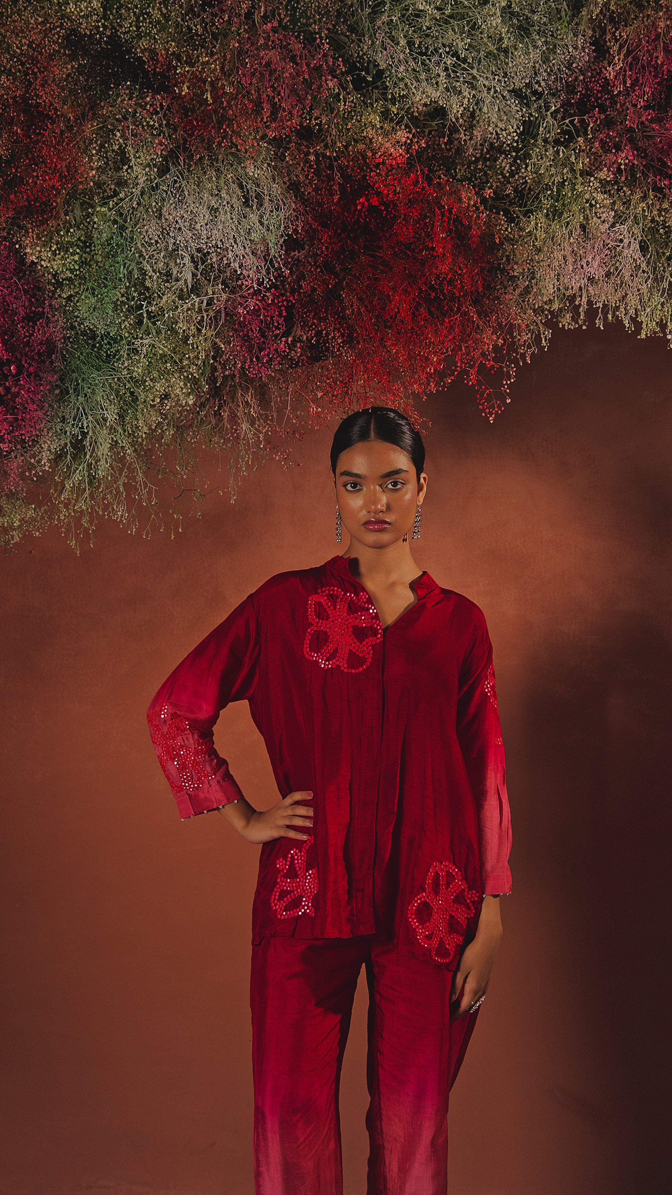 Berry Bloom Embellished Raw Silk Co-Ord Set