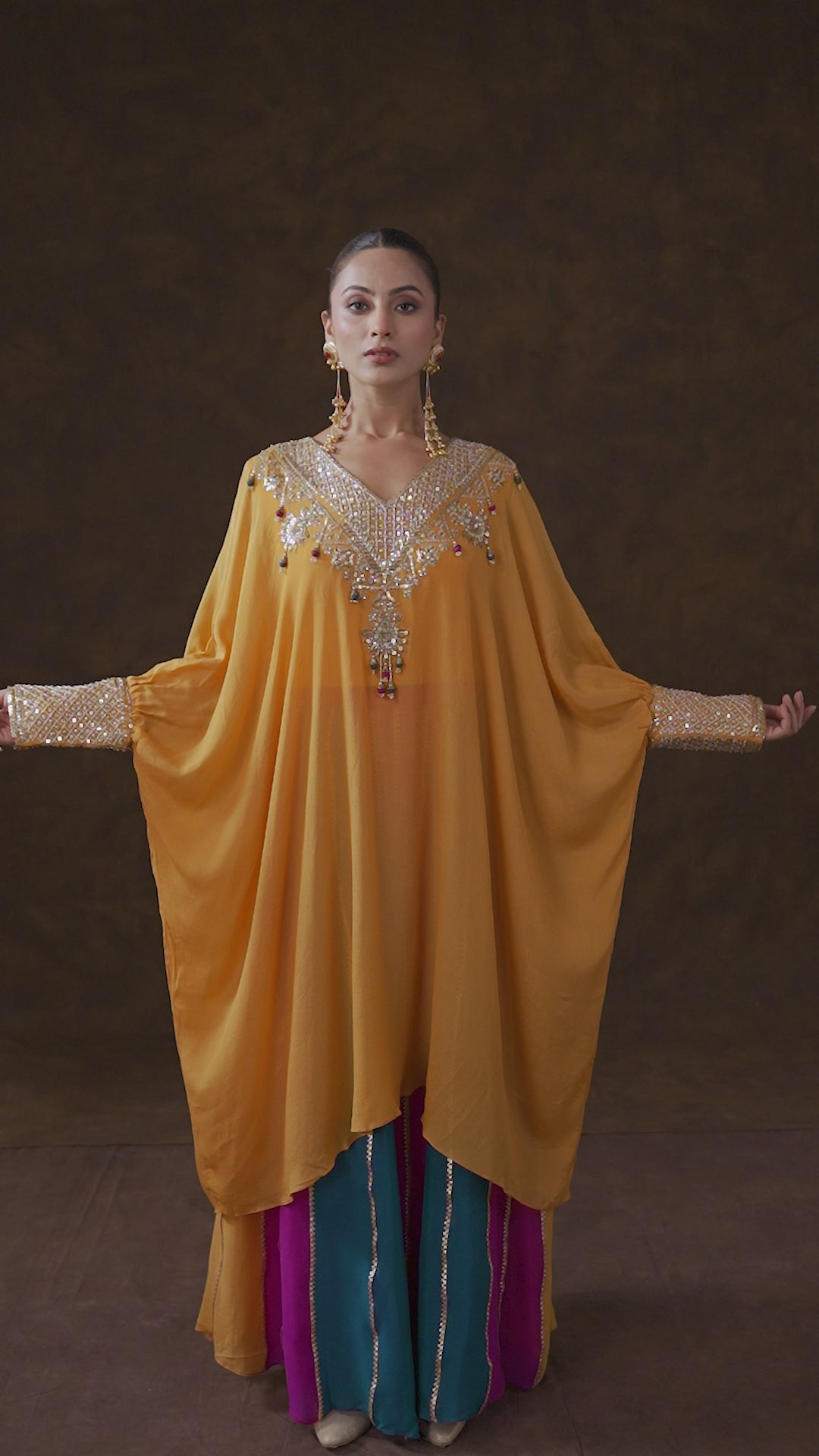 Golden Sunrise Embellished Chinon Silk Kaftan Set