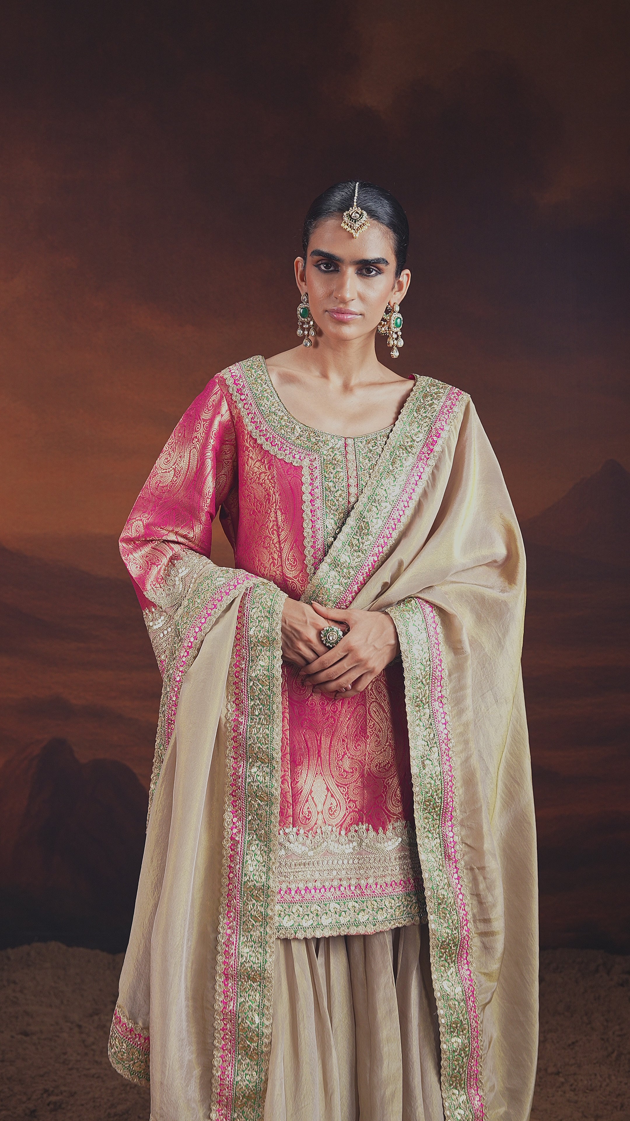Hot Pink Kashmiri Embroidered Kurta with Palazzo