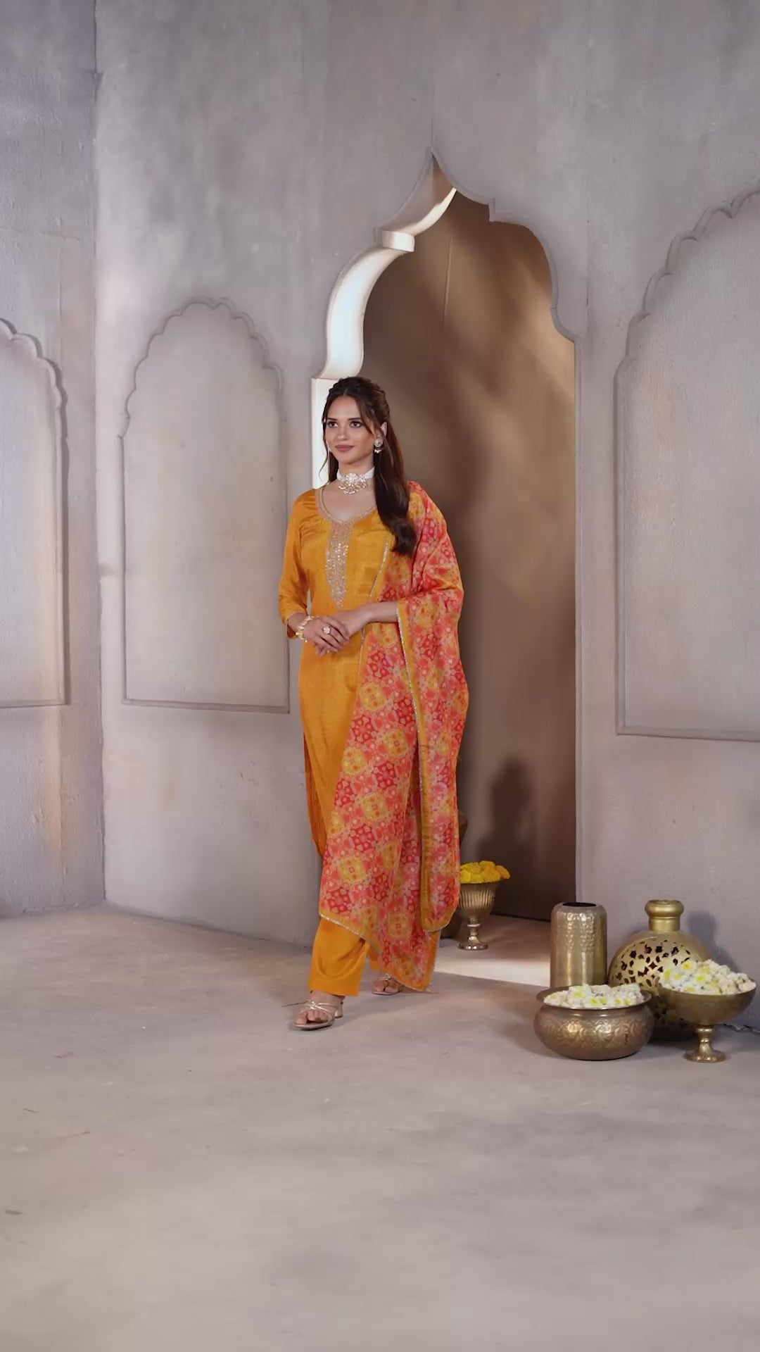 Deep Yellow Embellished Premium Silk Palazzo Set