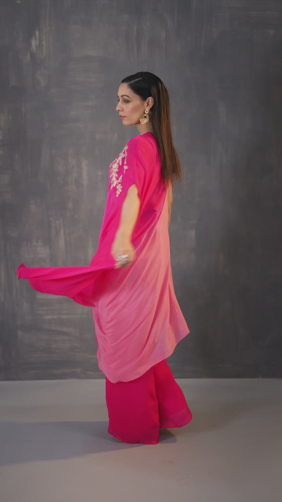 Hot Pink Ombre-Dyed Premium Georgette Silk Palazzo Set