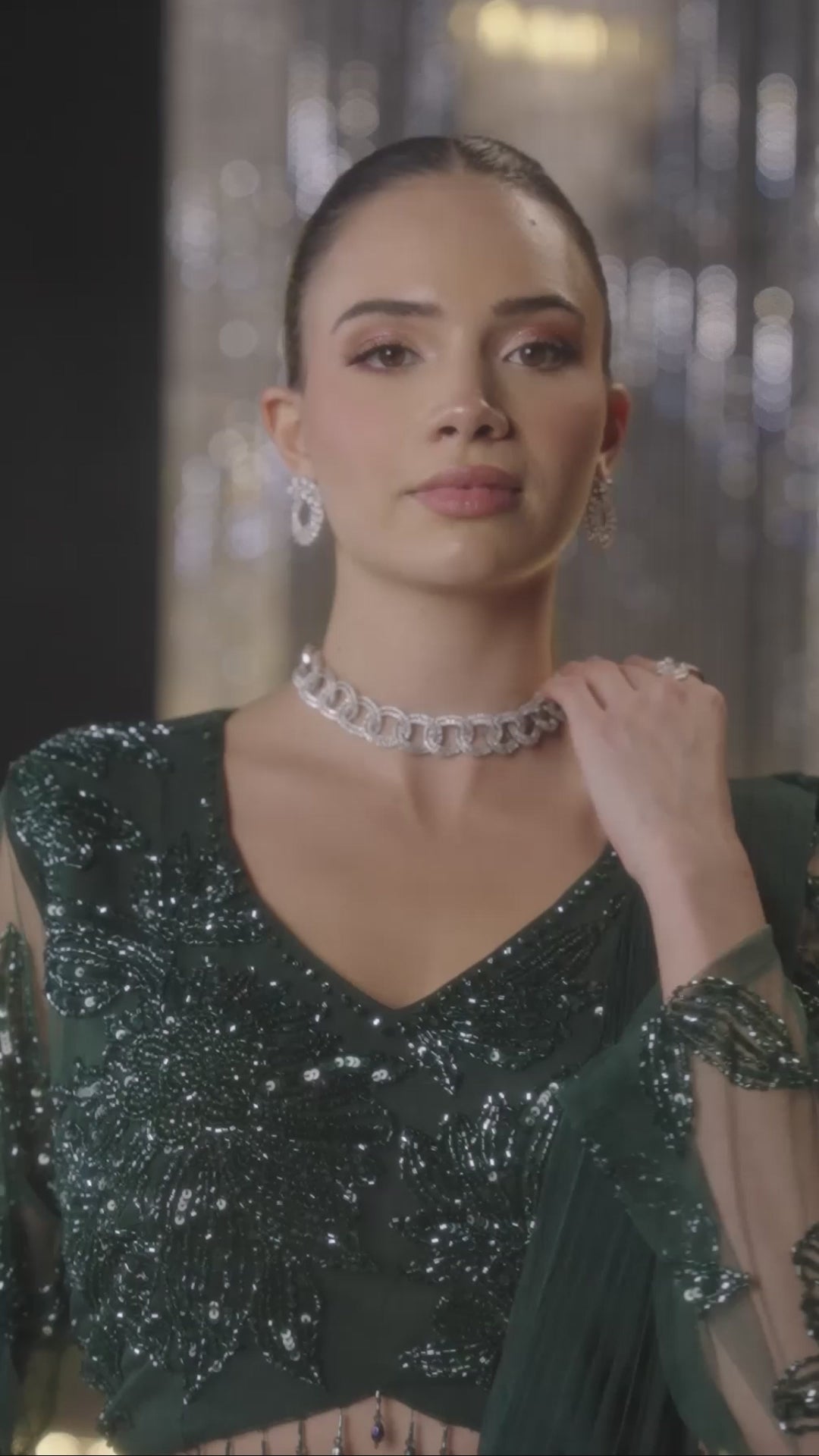 Emerald Green Embellished Satin Silk Drape Skirt Set