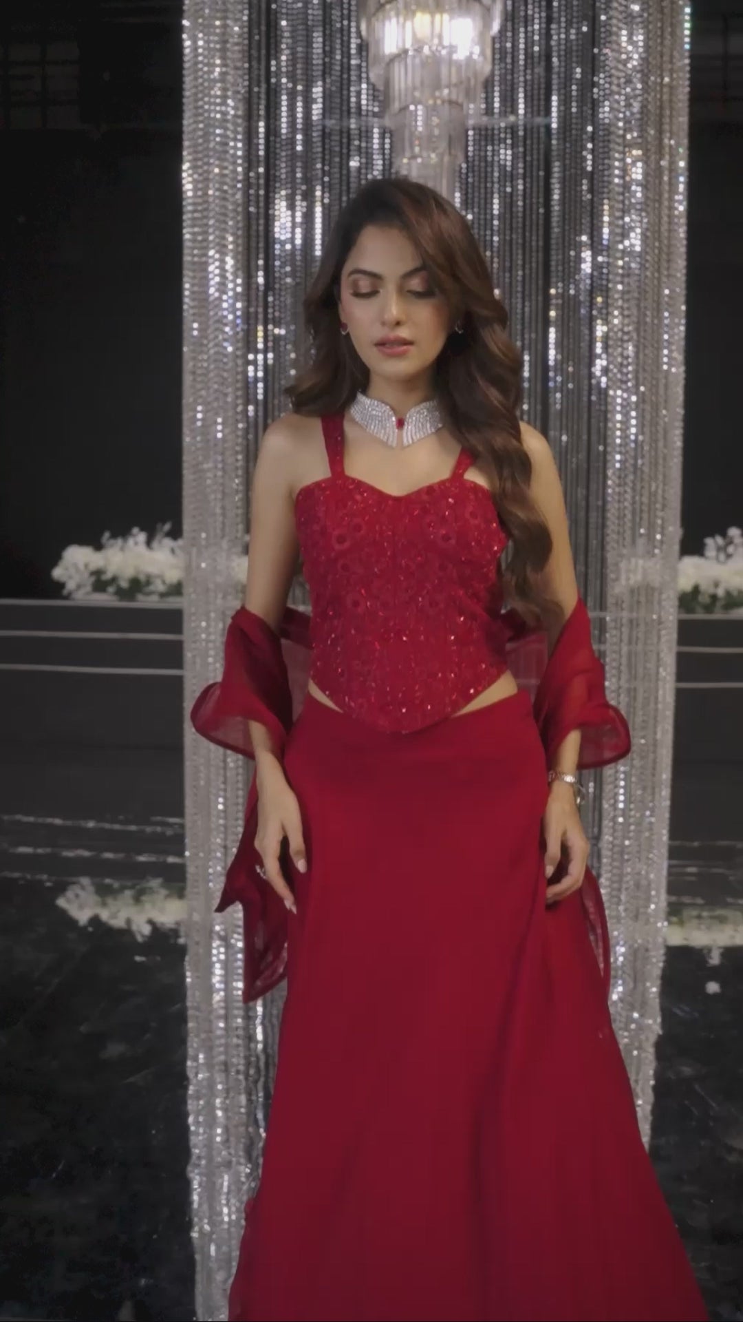 Maroon Red Embellished Georgette Silk Co-Ord Set