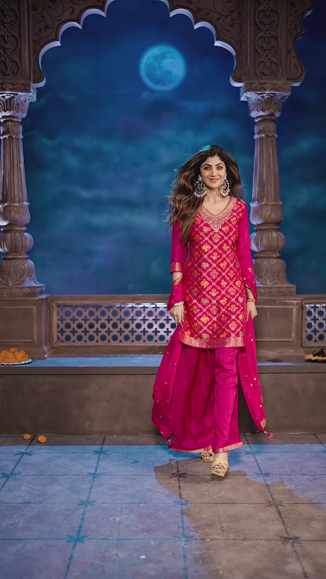 Pink Embellished Satin Silk Palazzo Set