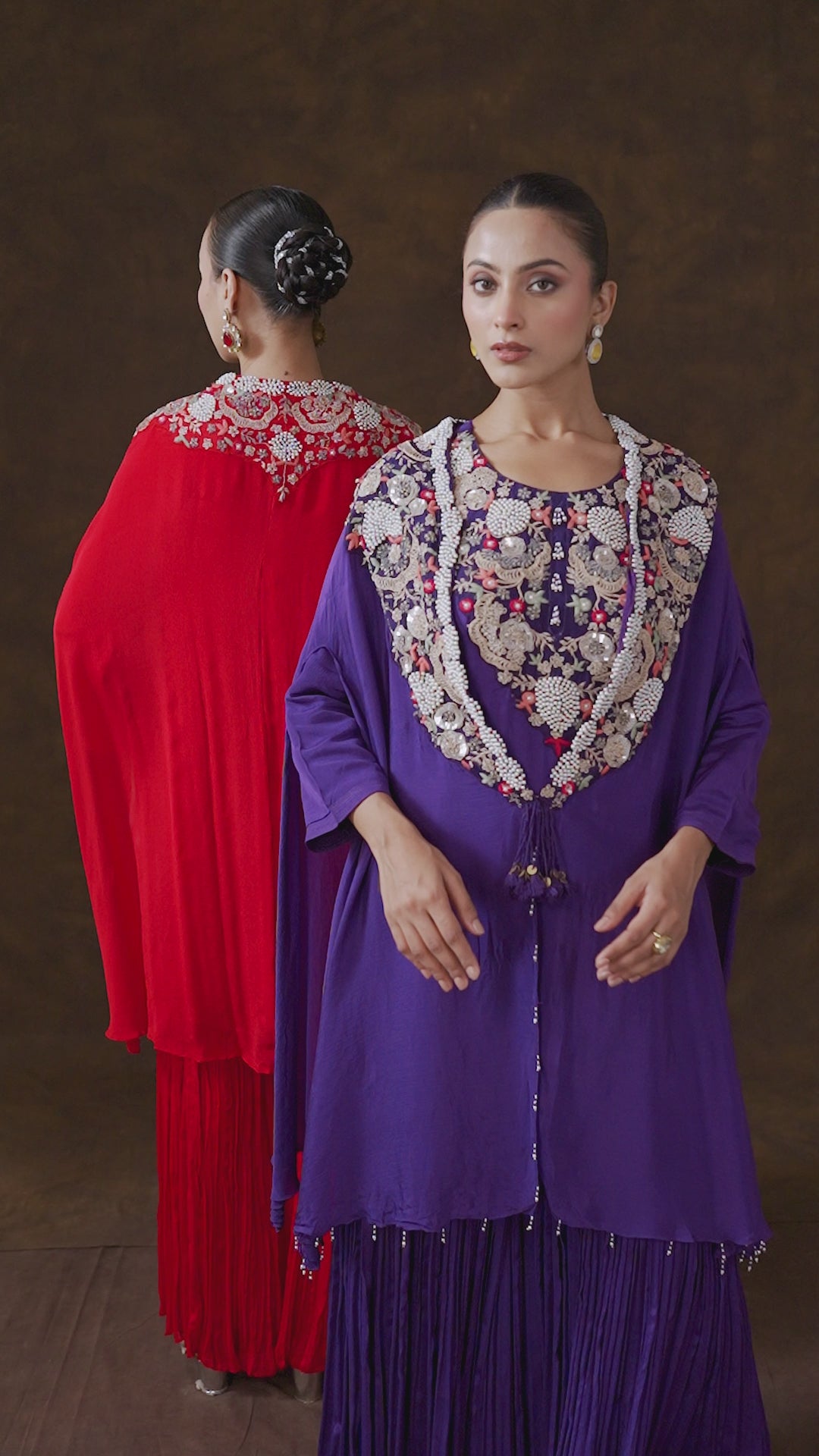 Regal Voilet Embellished Chinon Silk Sharara Set