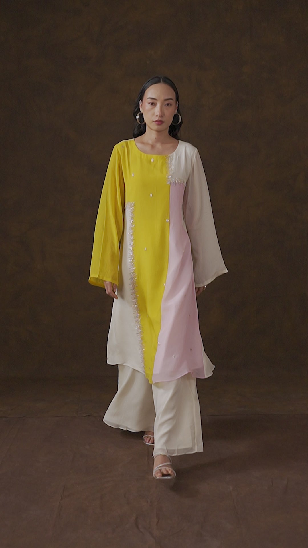 Soft Ivory Embellished Chinon Silk Palazzo Set