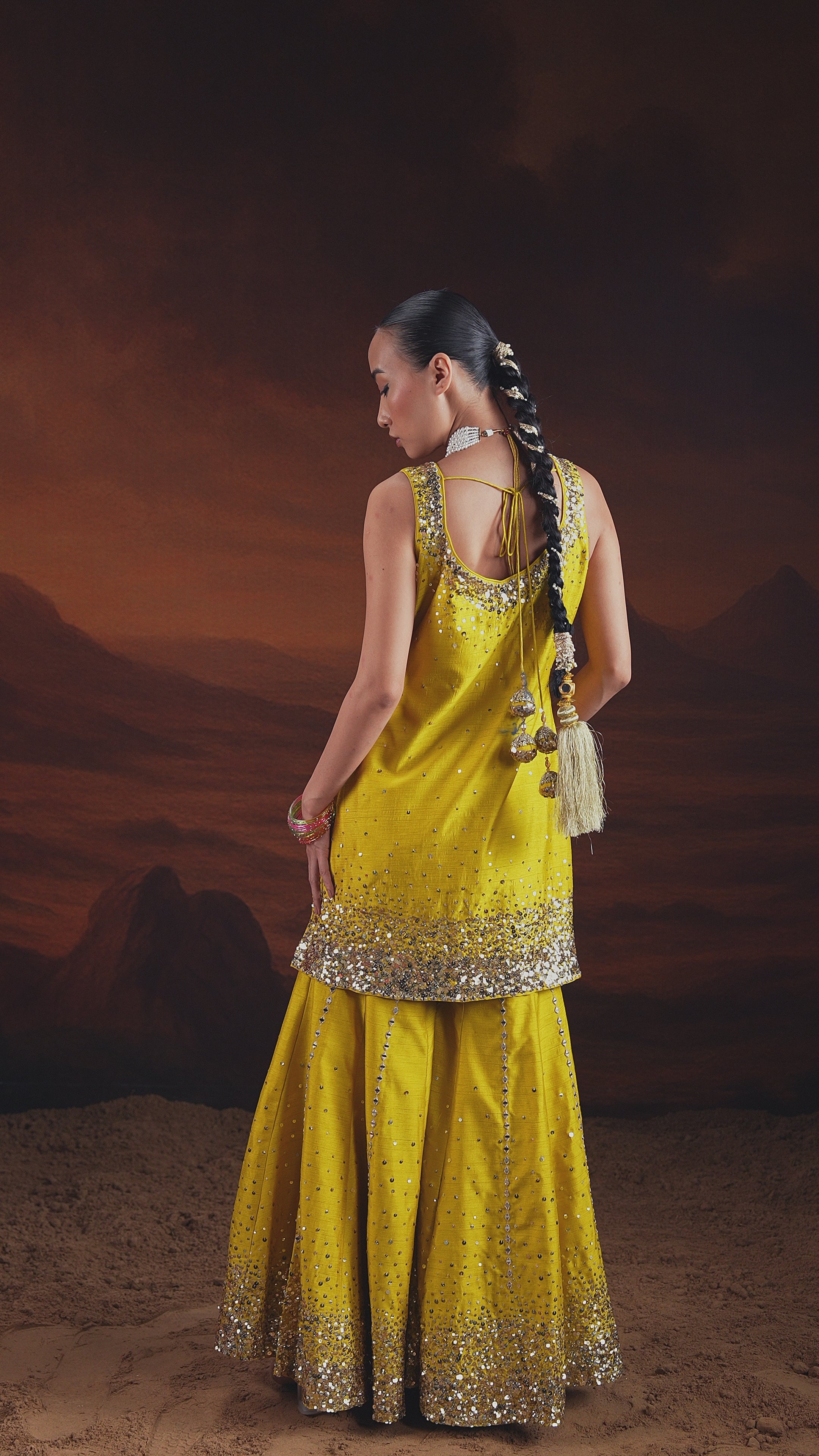 Vibrant Yellow Embellished Raw Silk Sharara Set