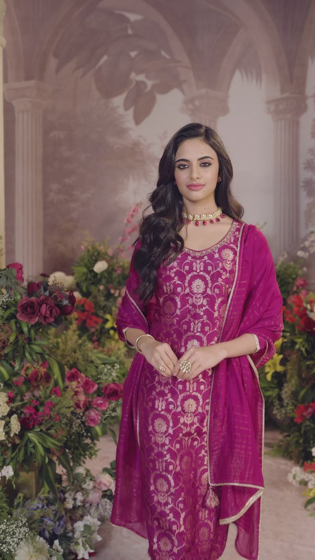 Violet Embellished Brocade Anarkali Set