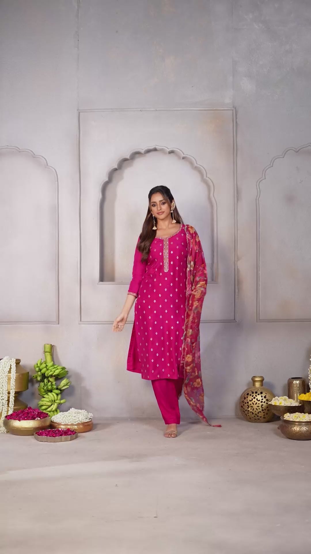 Rani Pink Printed Muslin Silk Pant Set