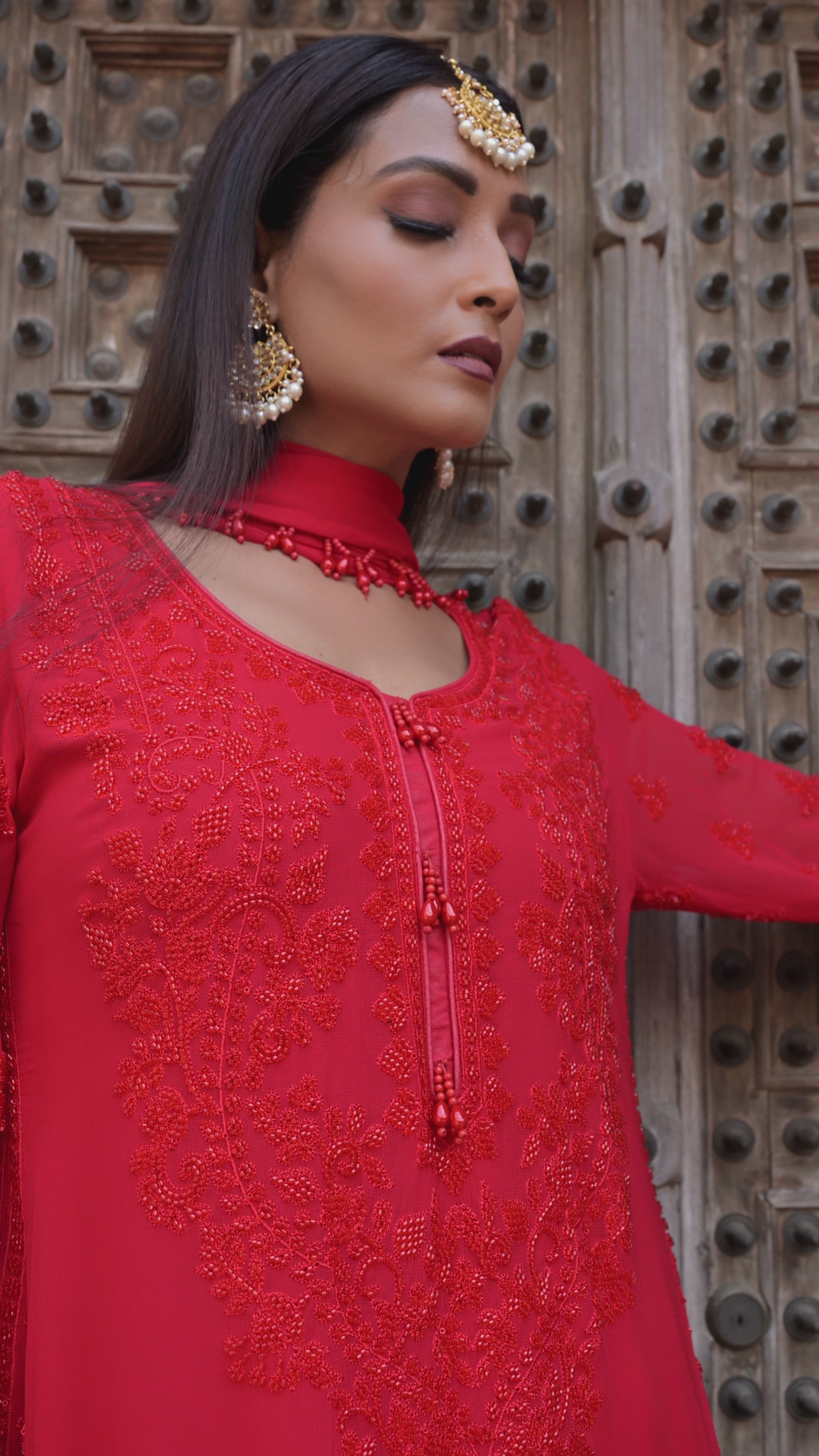 Scarlet Red Embellished Georgette Silk Anarkali Gown