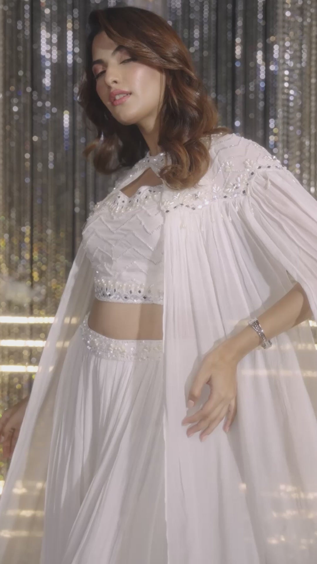 Tissue White Embellished Chinon Silk Cape Set