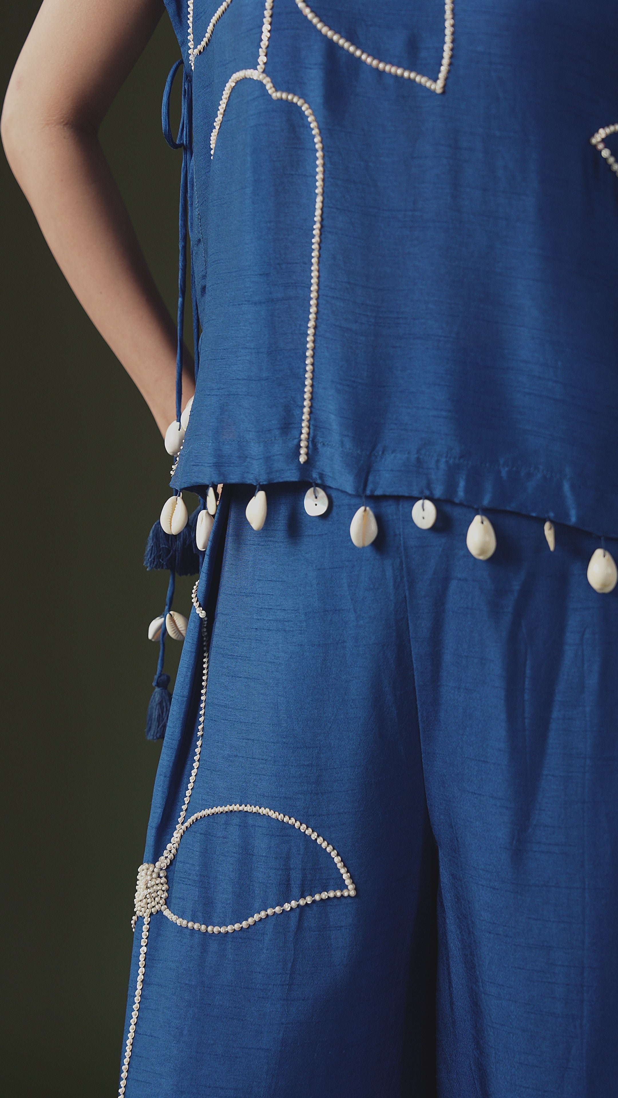 Deep Blue Embellished Satin Silk Co-Ord Set