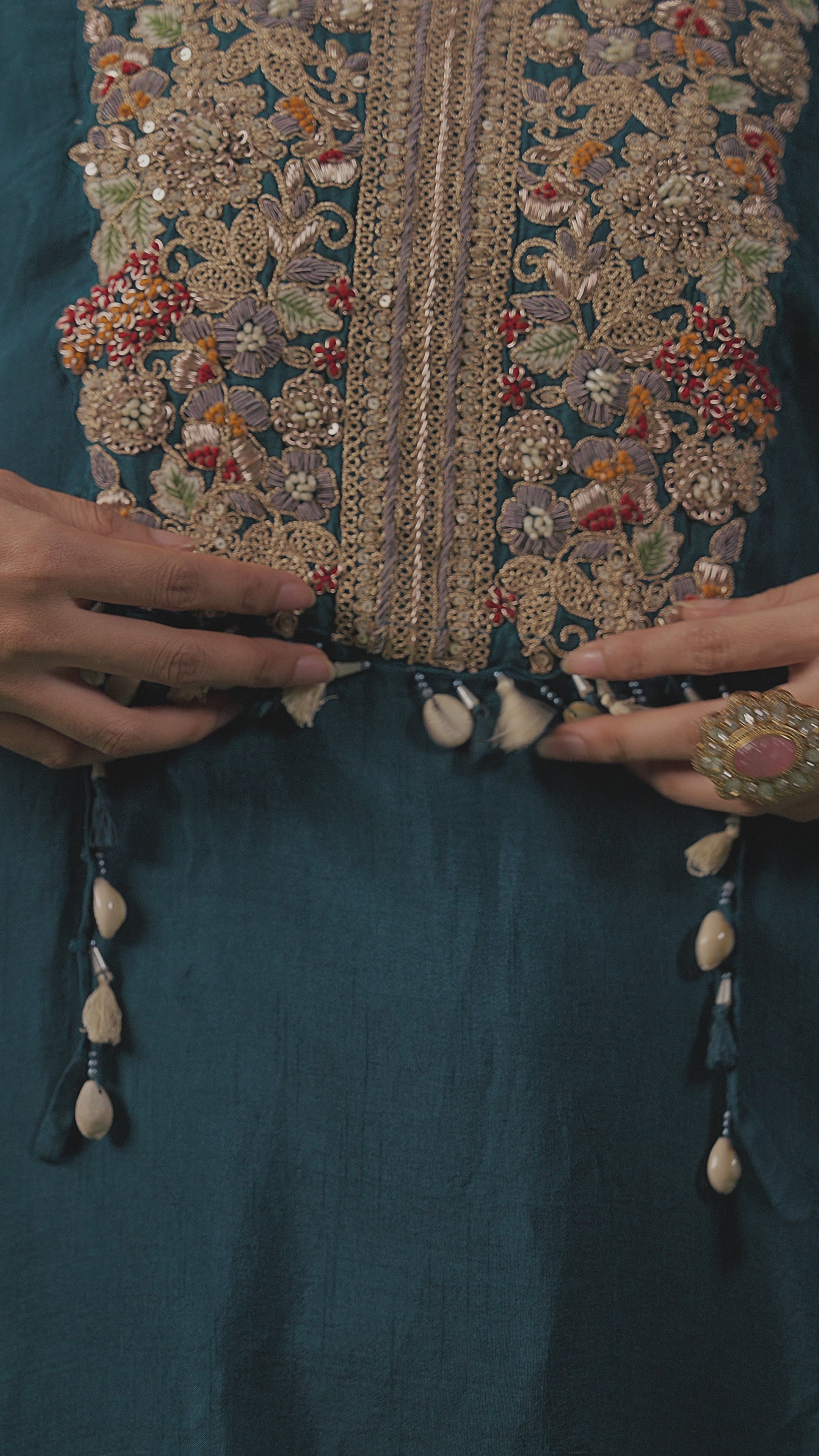 Teal Blue Embellished Raw Silk Palazzo Set
