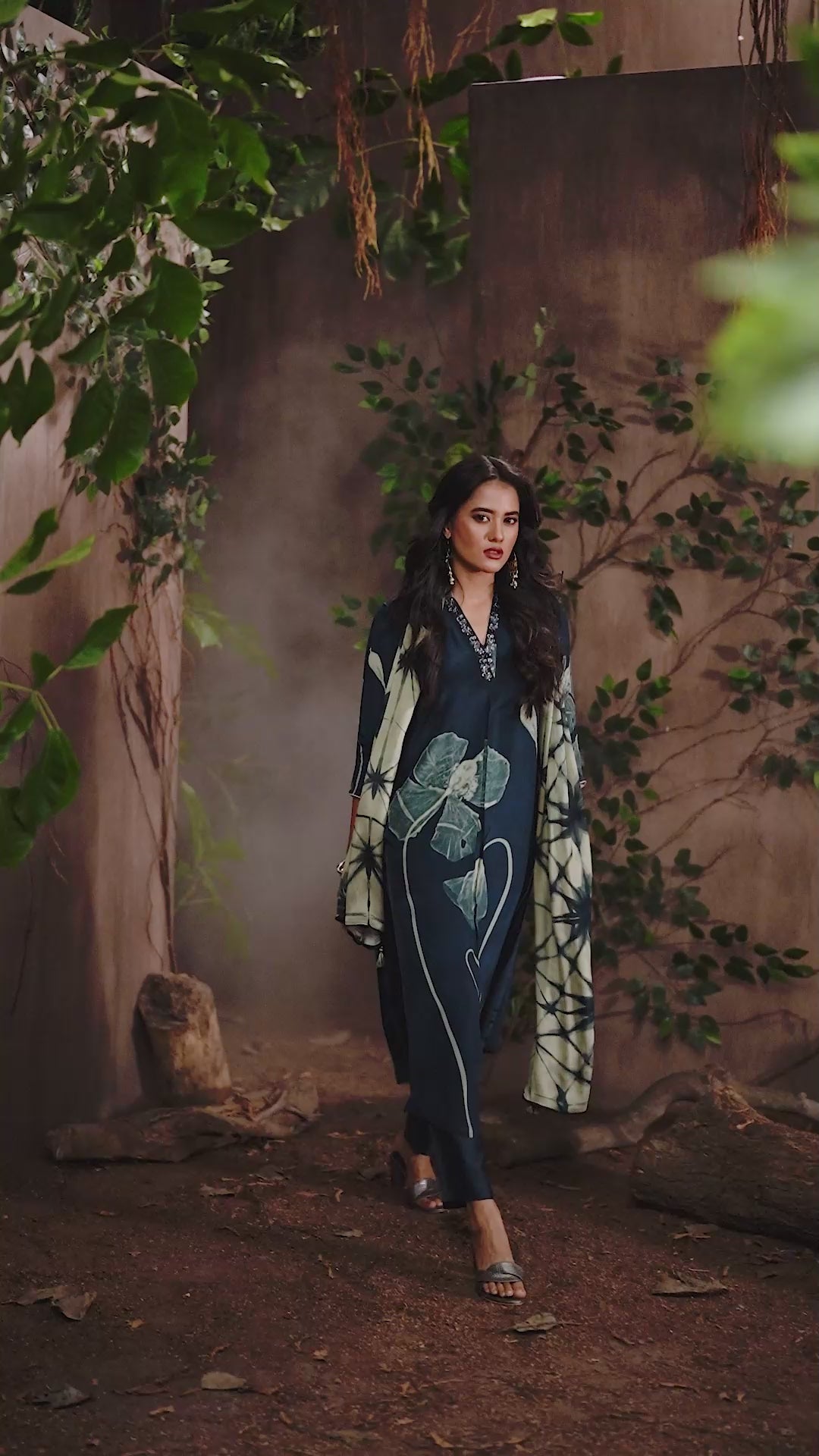 Navy Blue Printed Linen Silk Co-Ord Set