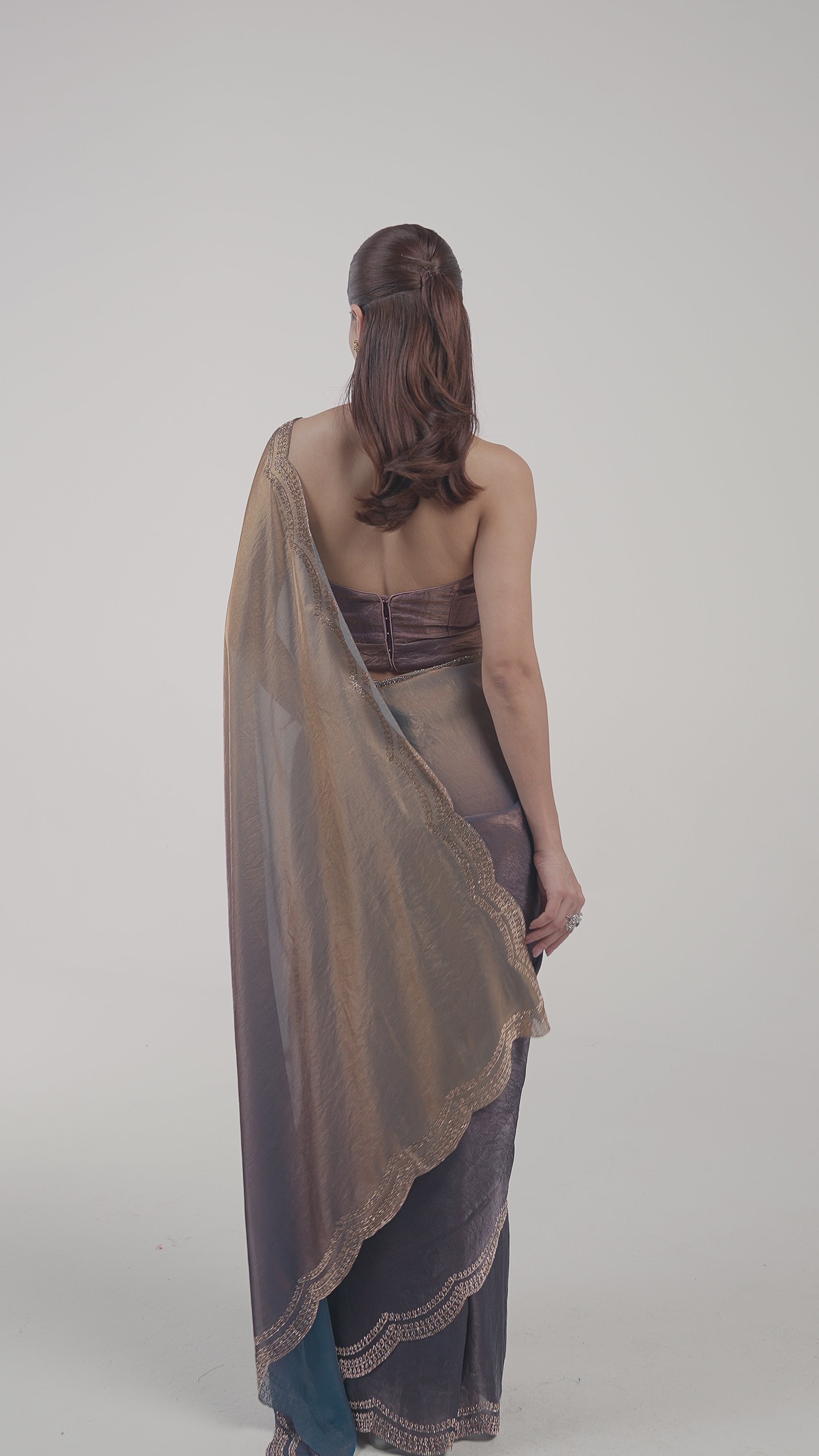 Deep Grey To Blue Ombre Shimmer Tissue Silk Saree