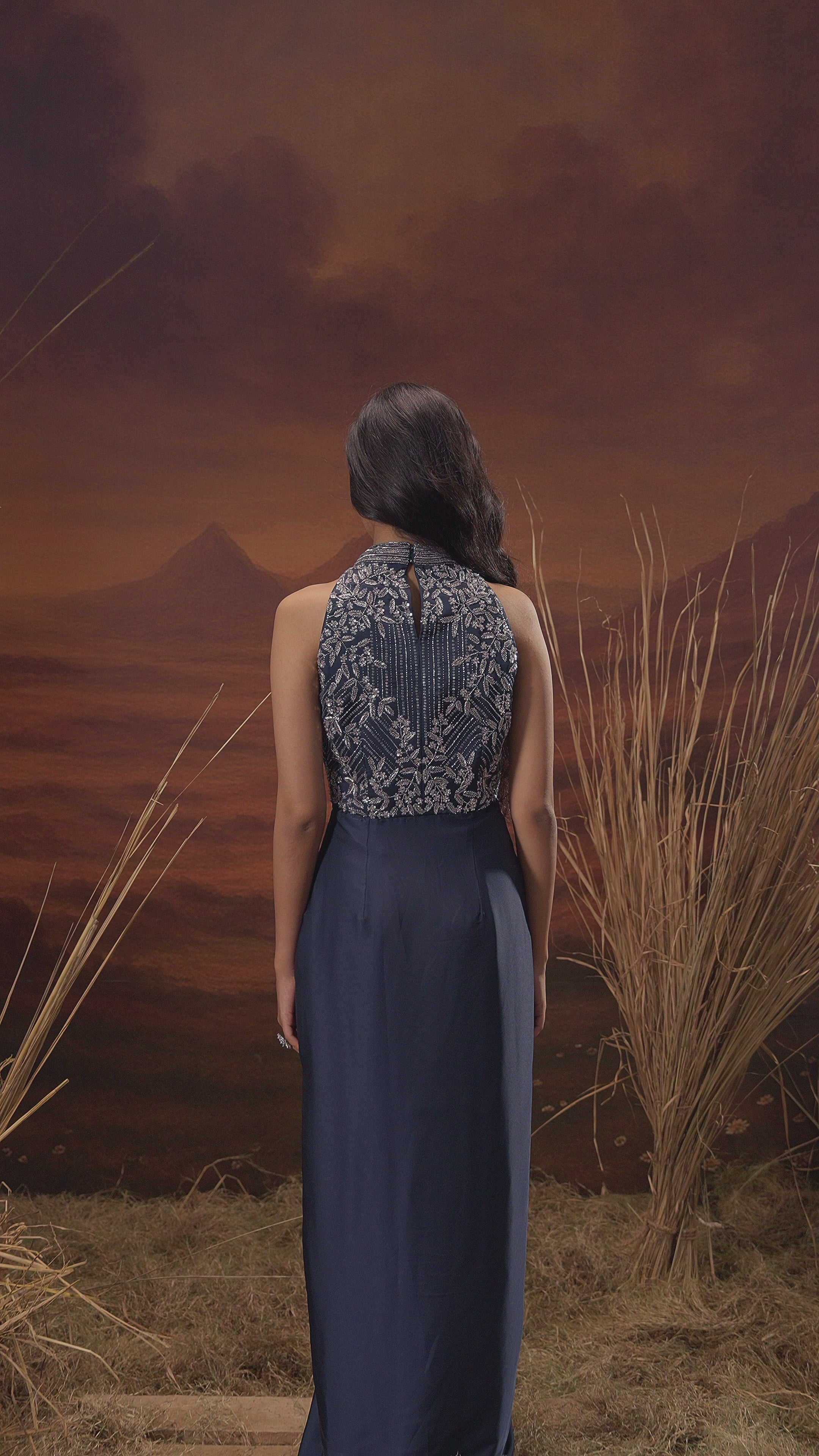 Midnight Blue Embellished Georgette Silk Gown