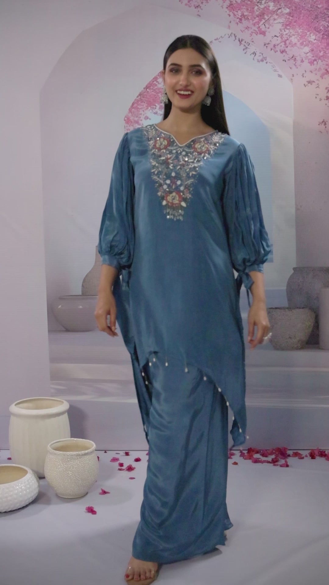 Sky Blue Handwork Crepe Silk Kurta & Pant Set
