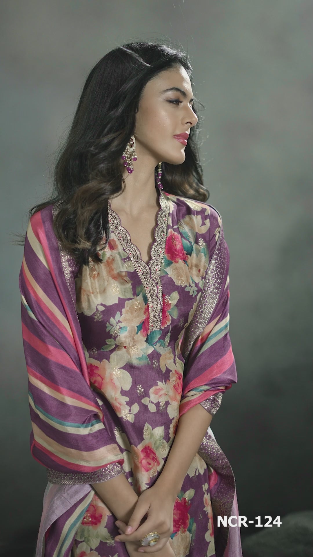 Vibrant Purple Embellished Crepe Silk Skirt Set