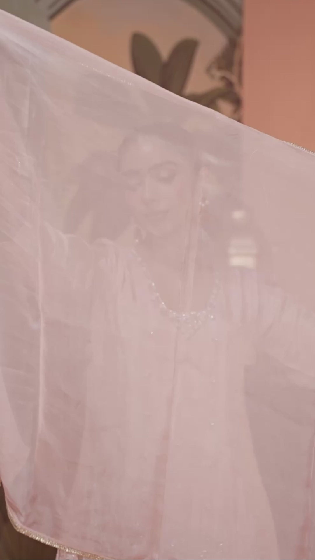 Peach Pink Embellished Shimmer Tissue Silk Palazzo Set