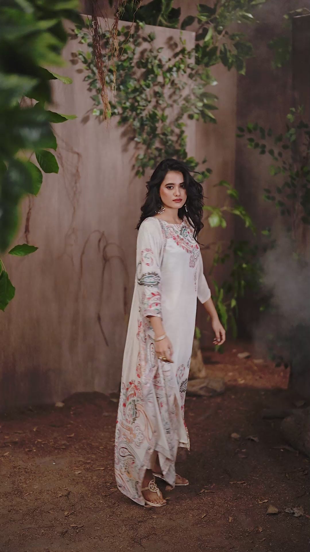 Light Grey Embellished Shimmer Raw Silk Anarkali Set