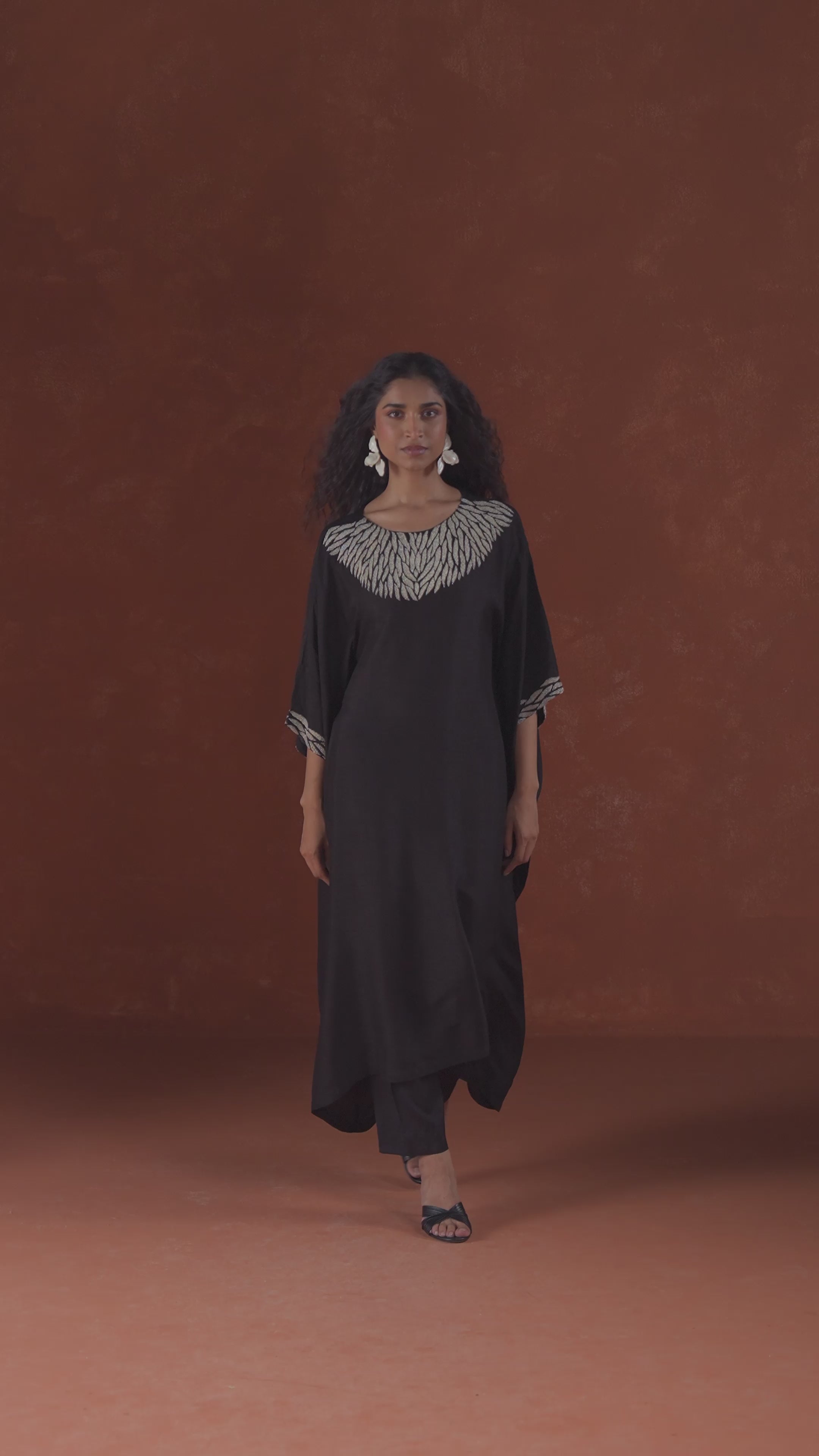 Twilight Black Embellished Raw Silk Kaftan Set