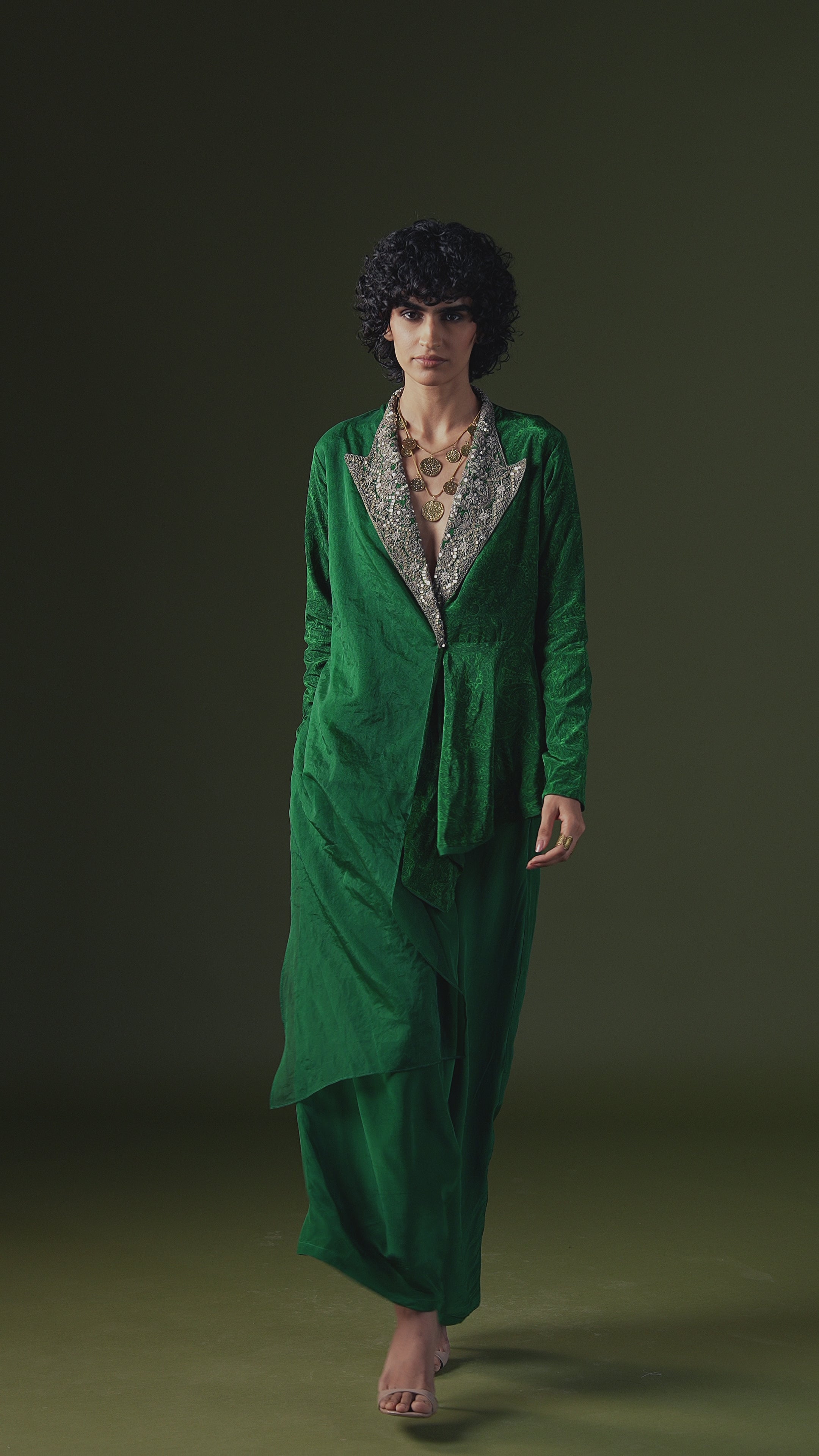 Emerald Green Embellished Satin Silk Co-Ord Set