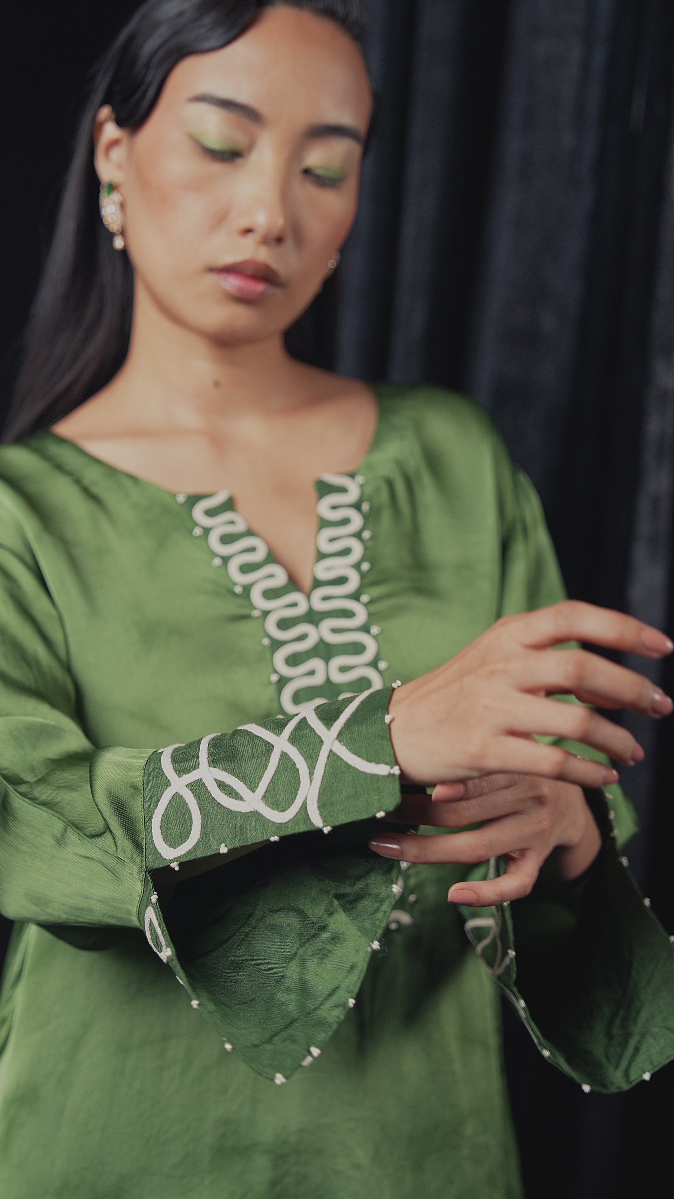 Olive Green Embroidered Premium Silk Co-Ord Set