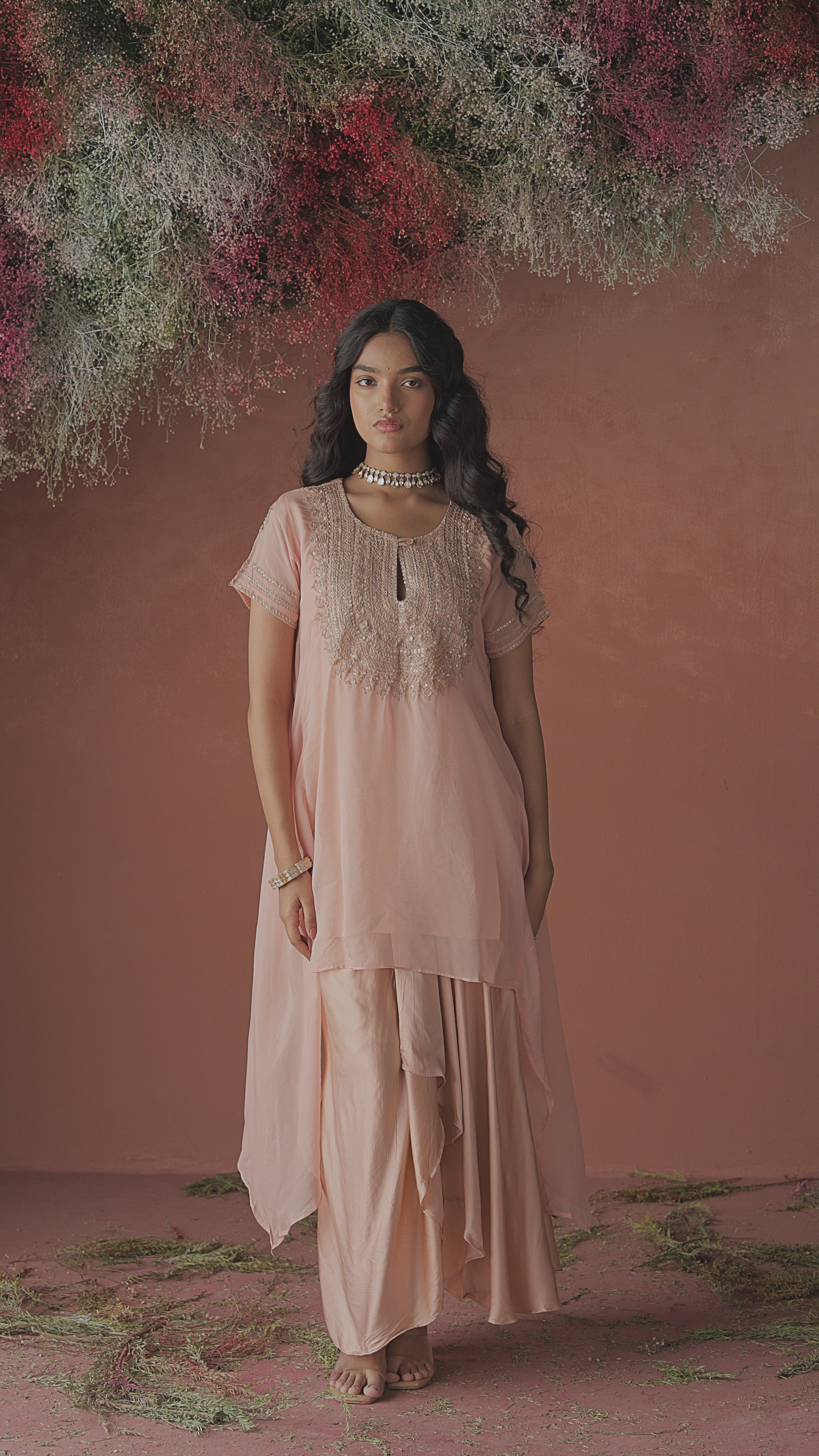 Tangerine Orange Embellished Satin Silk Dhoti Set