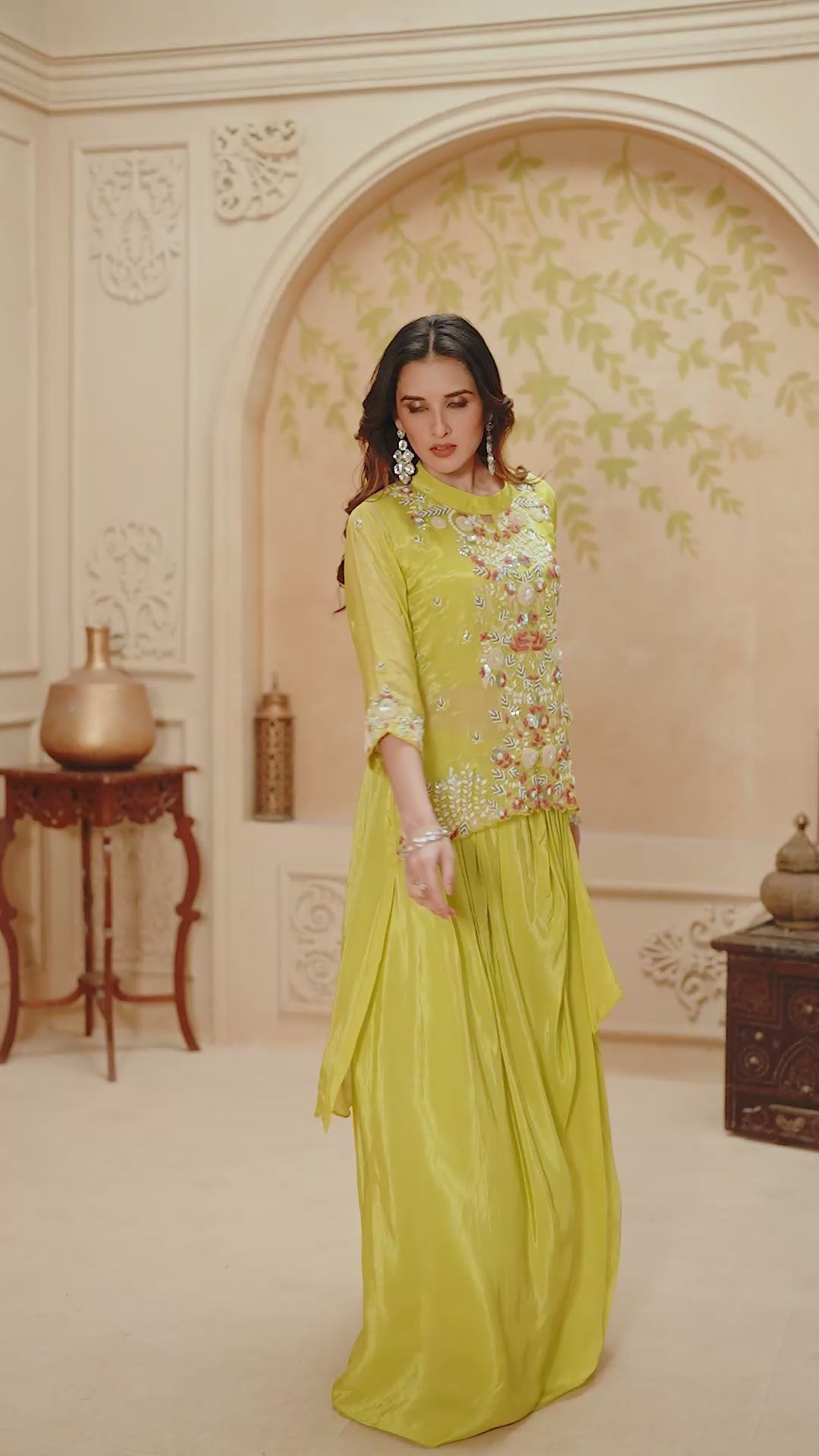 Lime Green Embellished Georgette Silk Palazzo Set