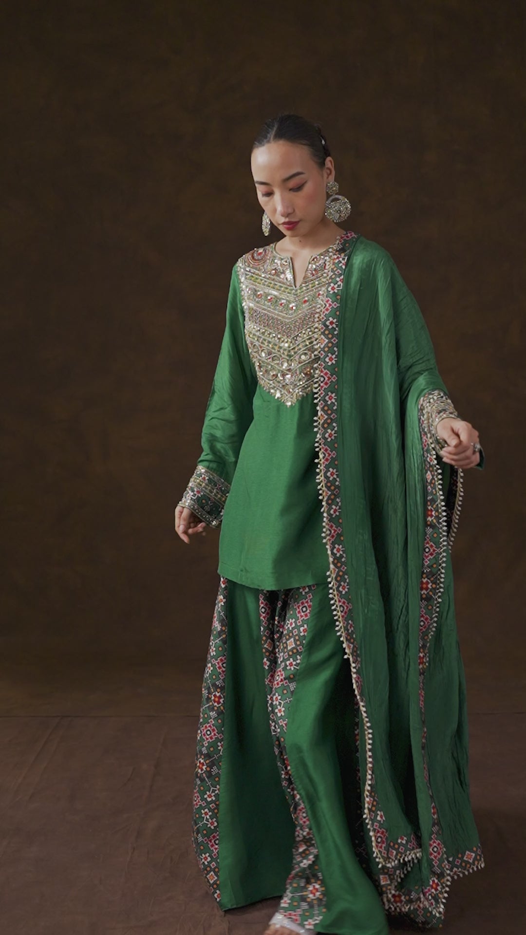 Rich Green Embellished Georgette Silk Co-Ord Set