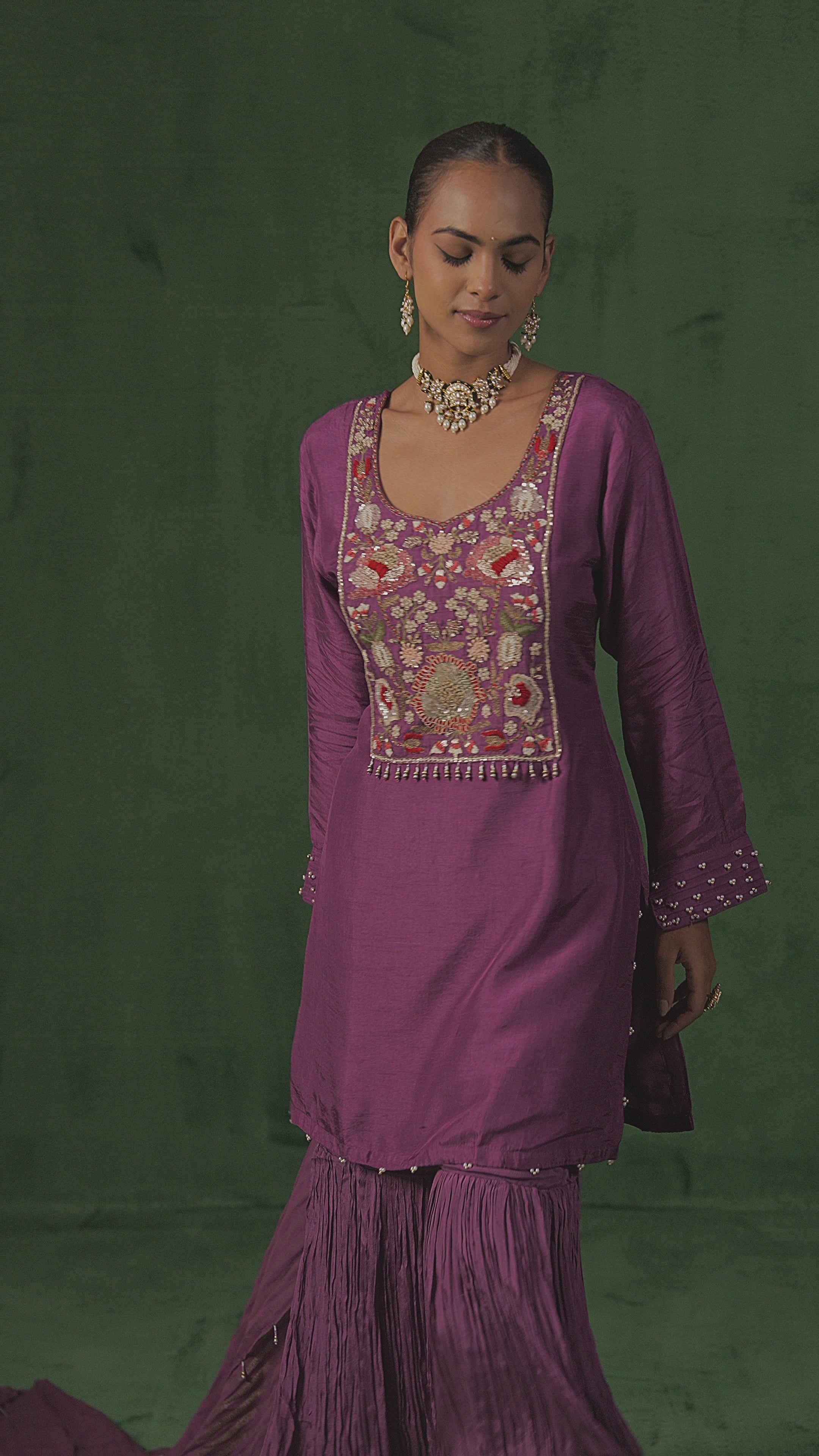 Plum Purple Embellished Raw Silk Sharara Set