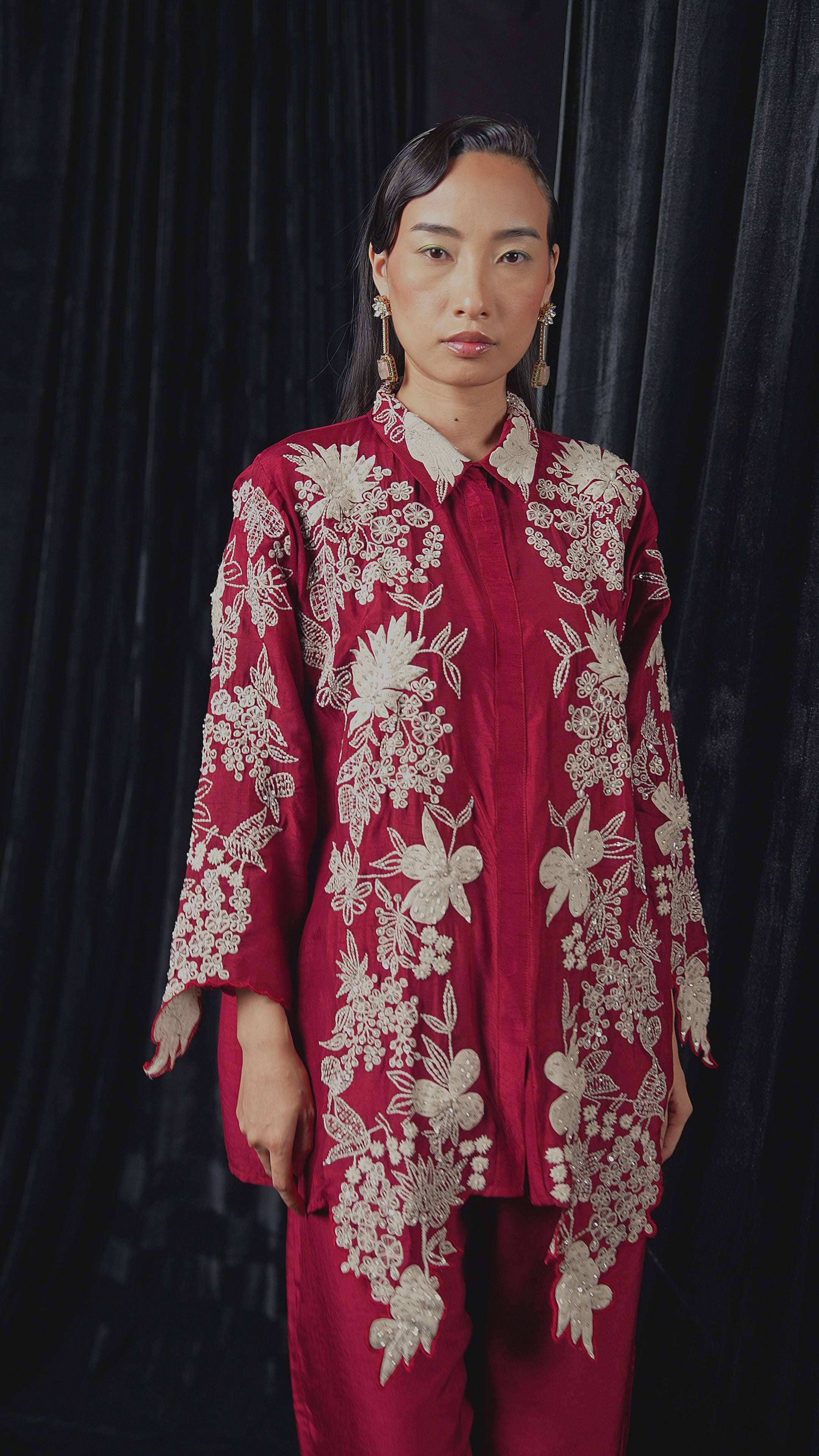 Maroon Embroidered Raw Silk Co-Ord Set