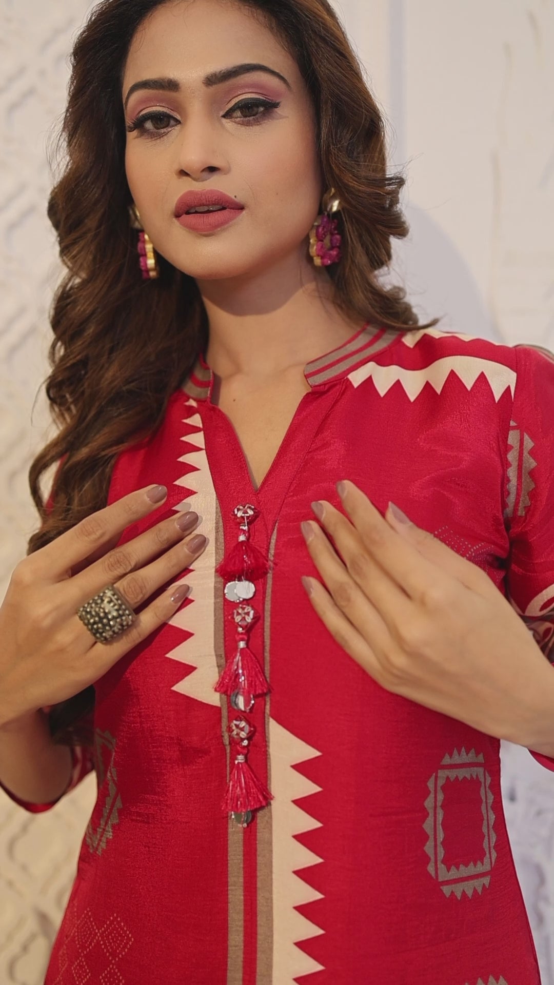 Red Printed Muslin Silk Kurta Set
