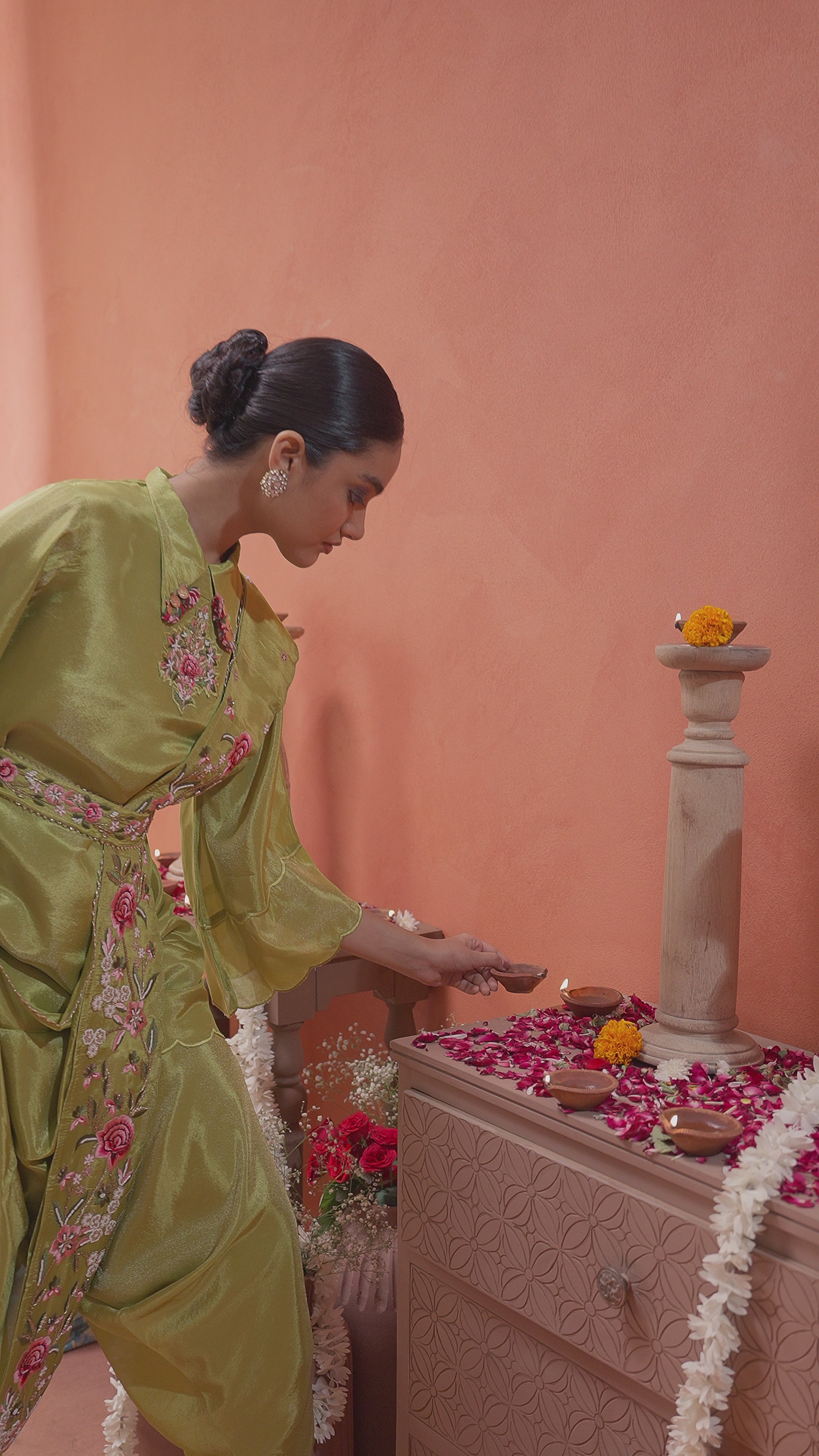 Sage Green Embellished Premium Silk Palazzo Set