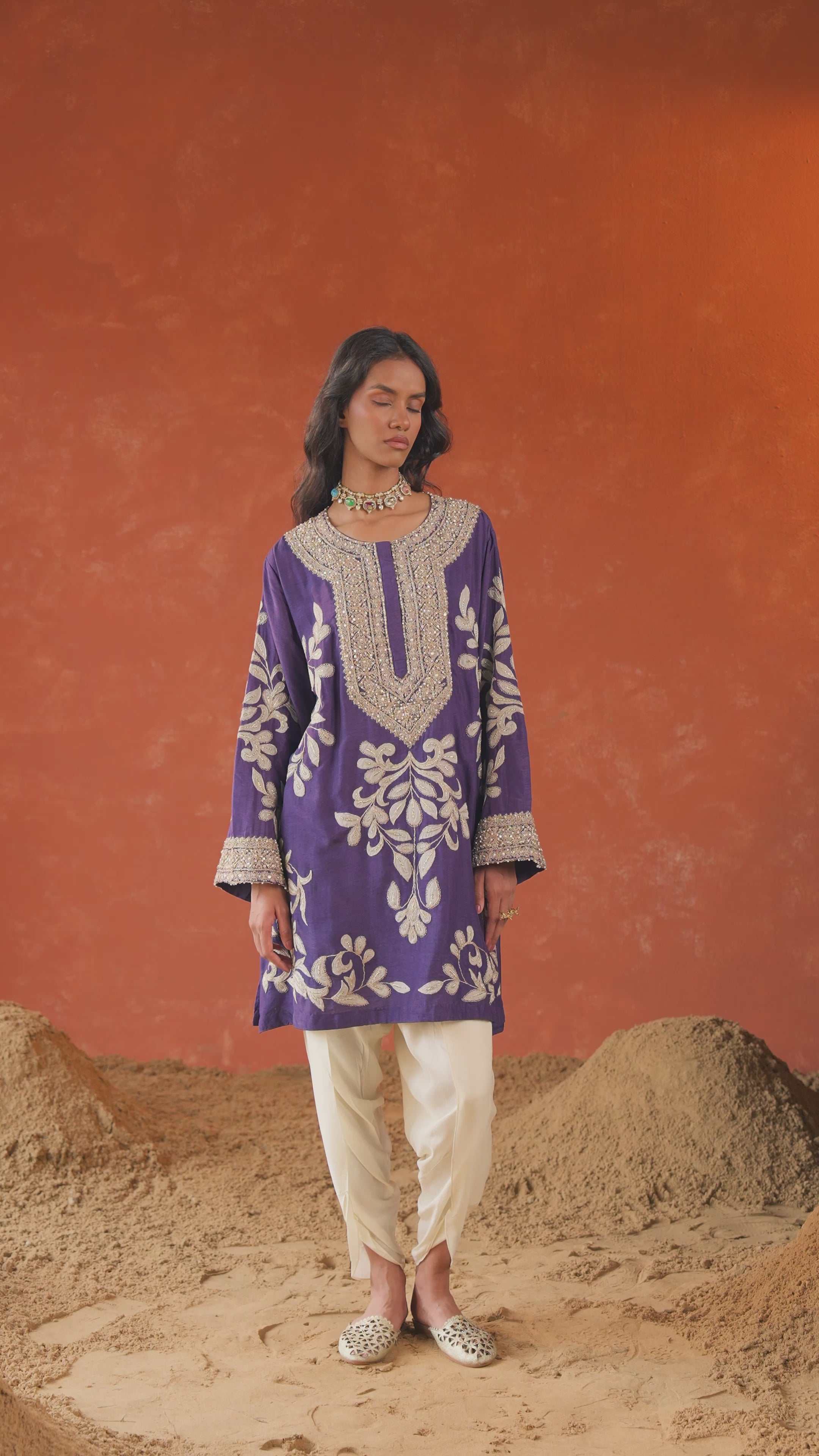 Royal Purple Embellished Raw Silk Dhoti Set