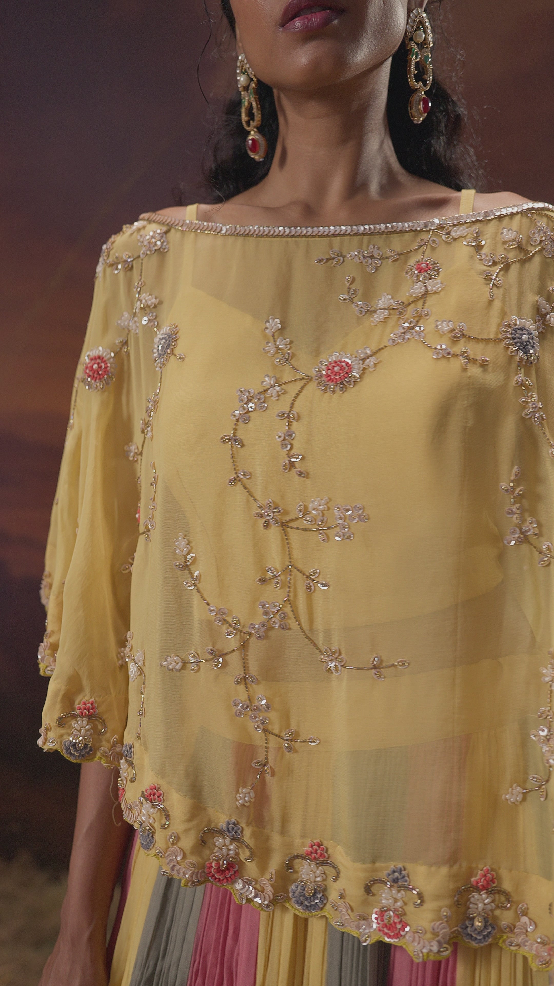 Pastel Yellow Embellished Soft Organza Silk Skirt Set
