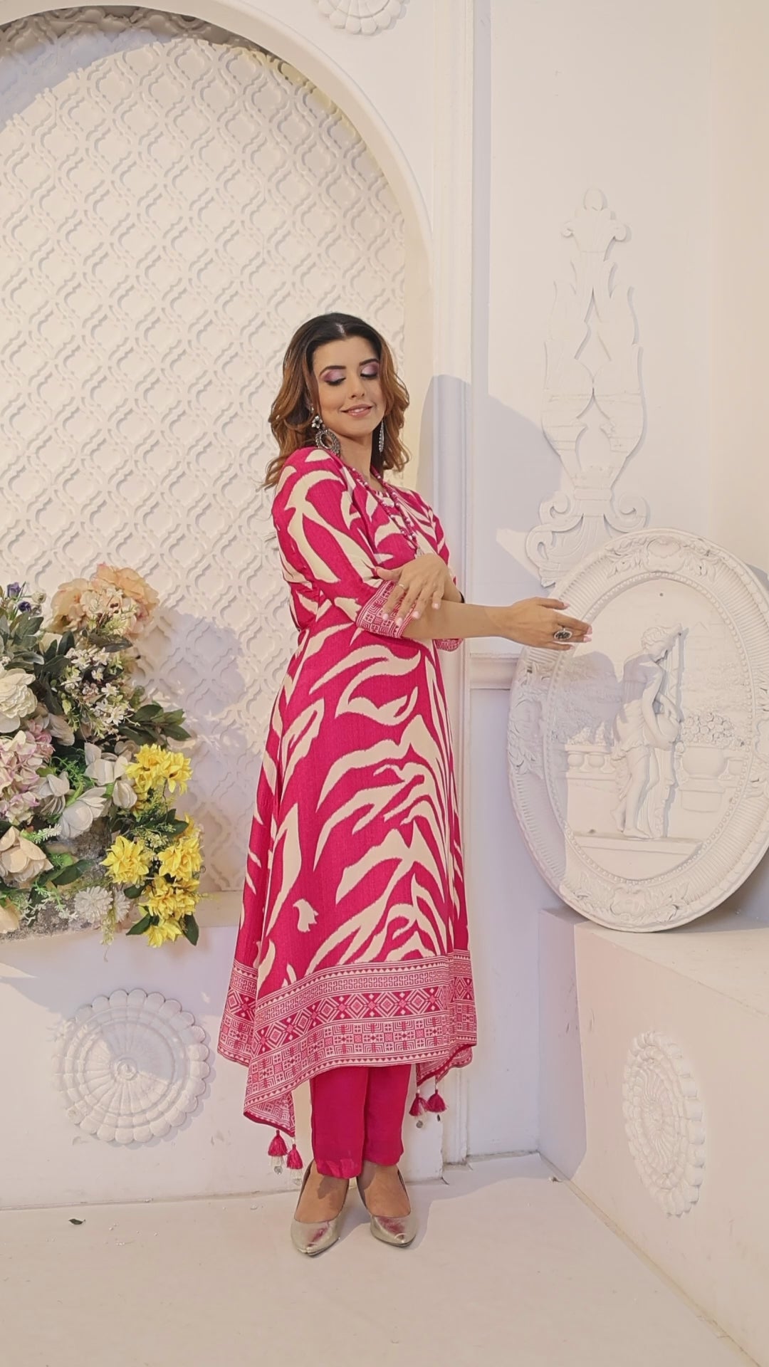 Pink Printed Muslin Silk Kurta Set
