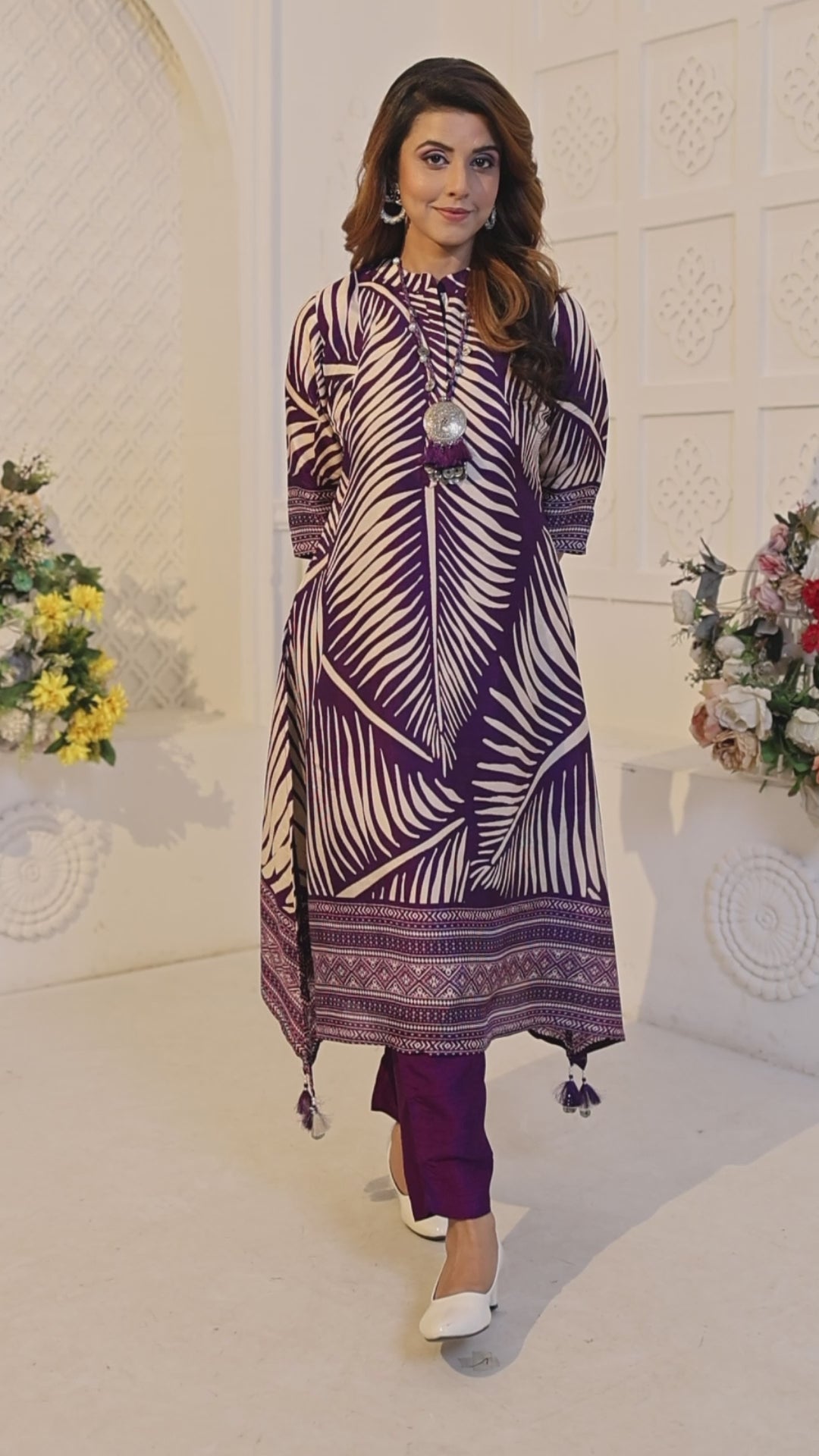 Hot Purple Printed Muslin Silk Kurta Set