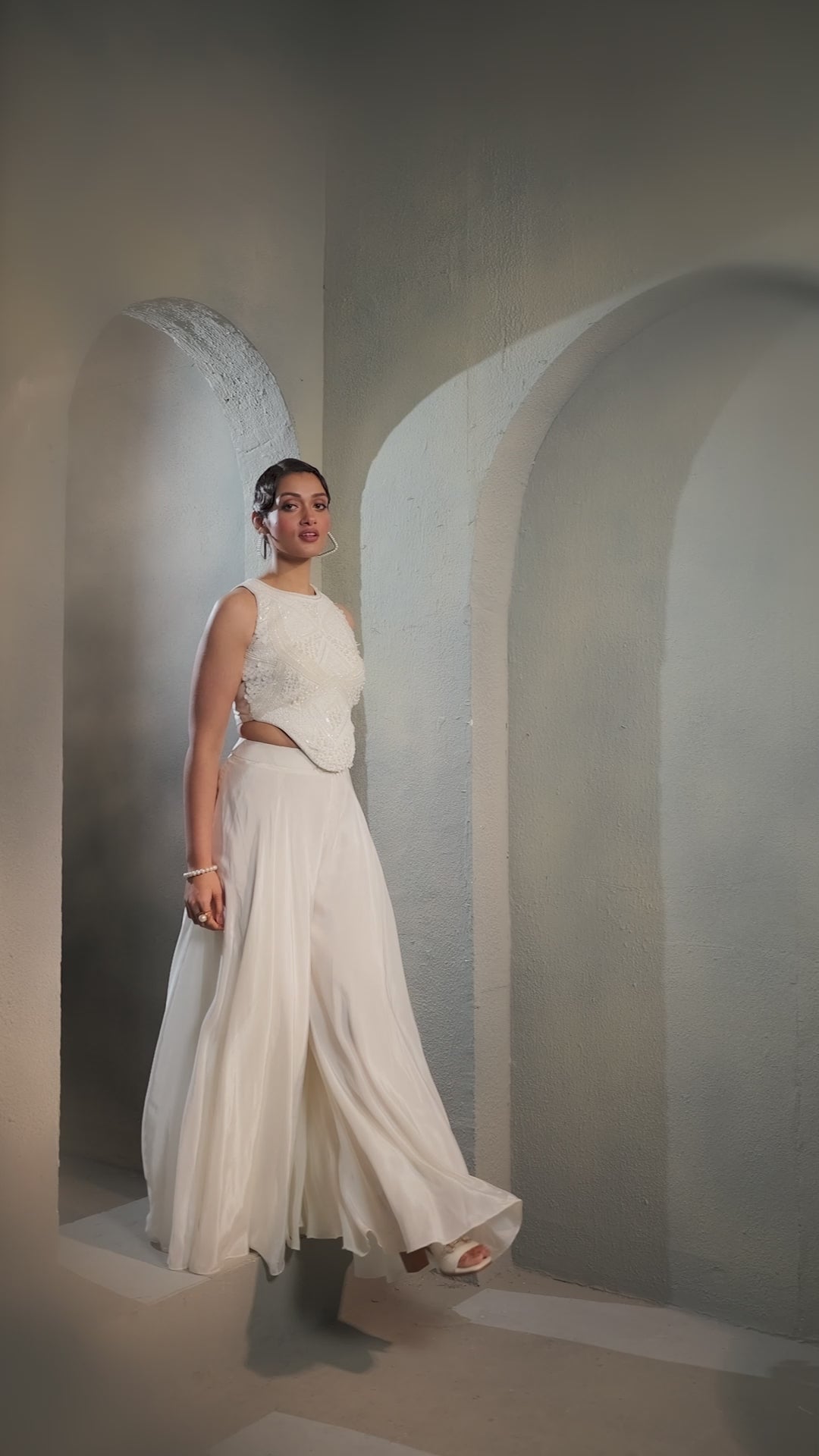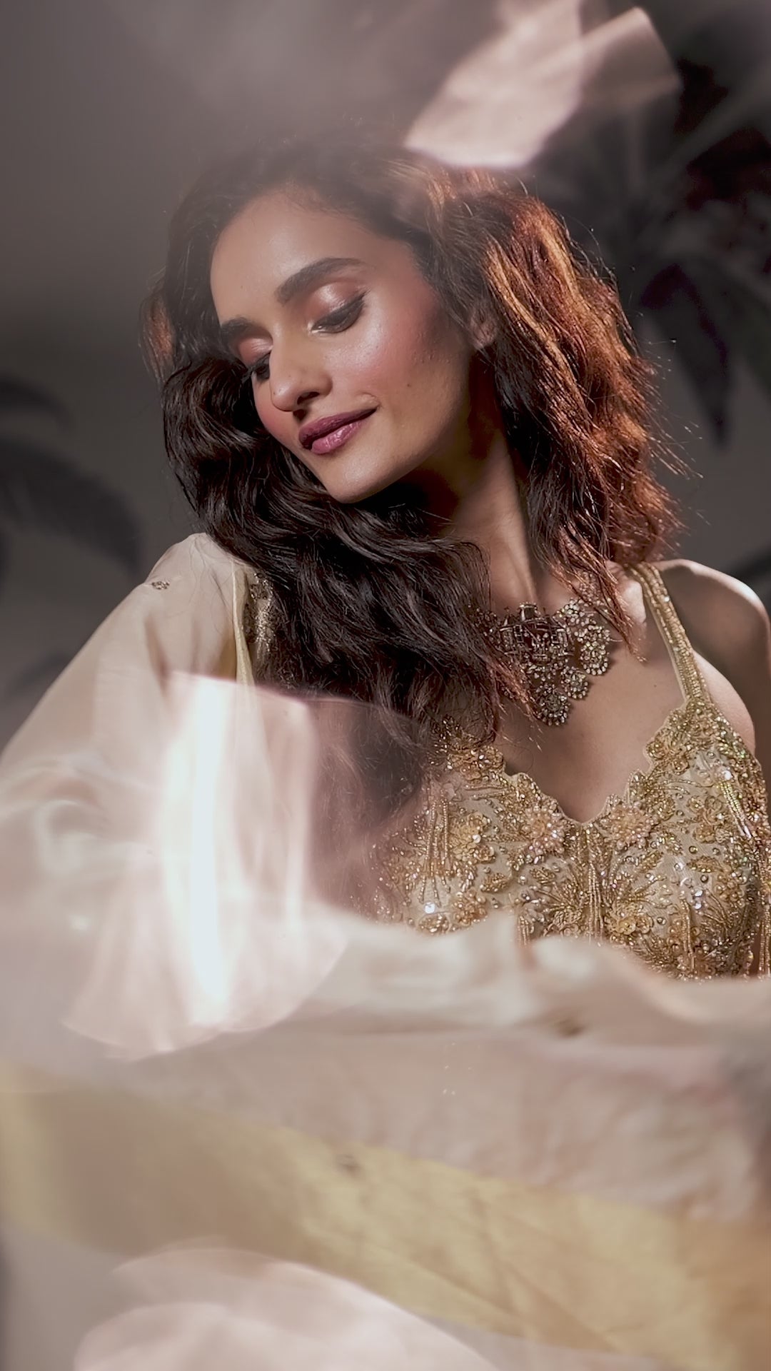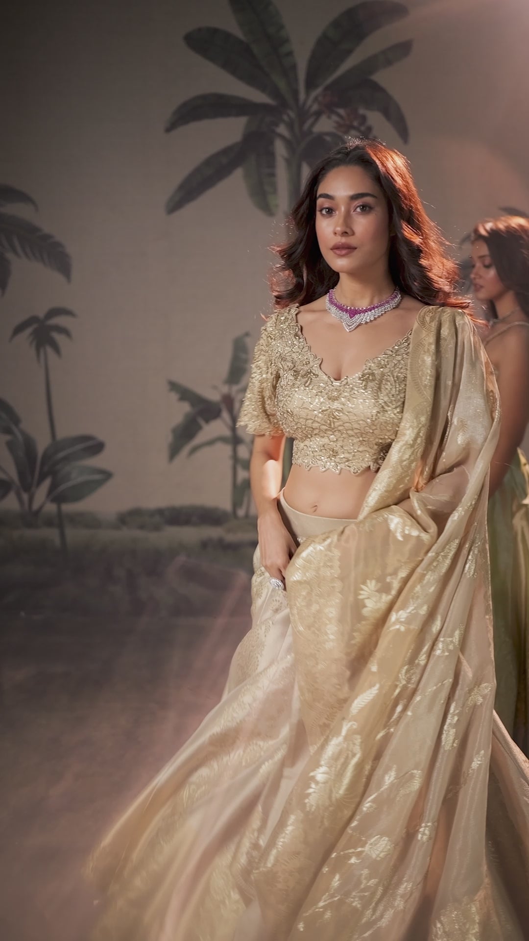 Ivory Gold Embellished Shimmer Tissue Silk Lehenga Set