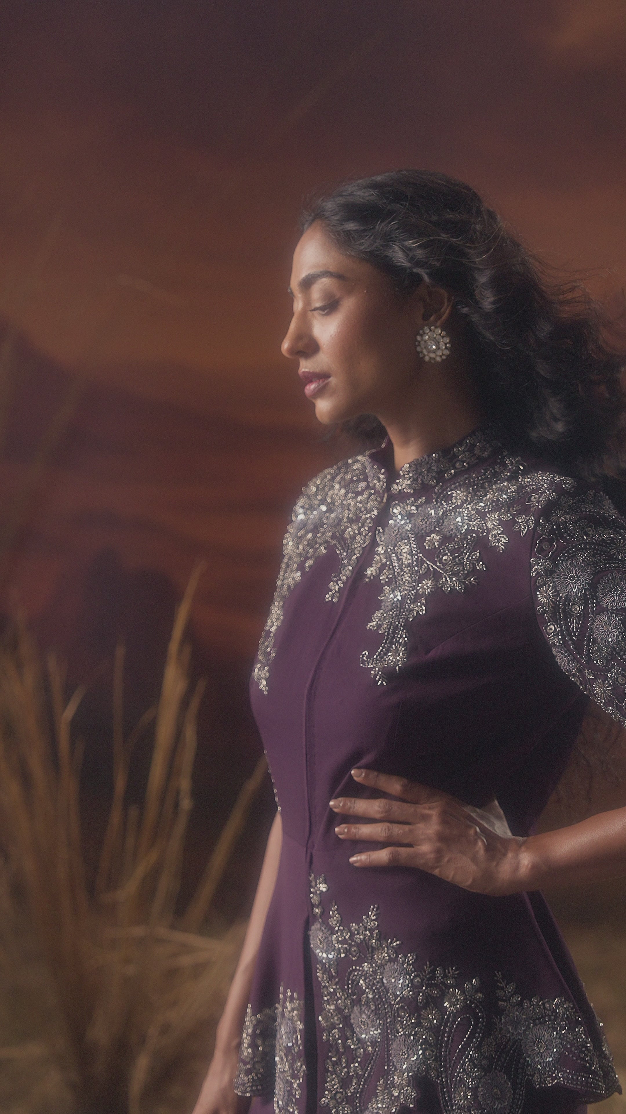 Wine Purple Embellished Premium Silk Co-Ord Set
