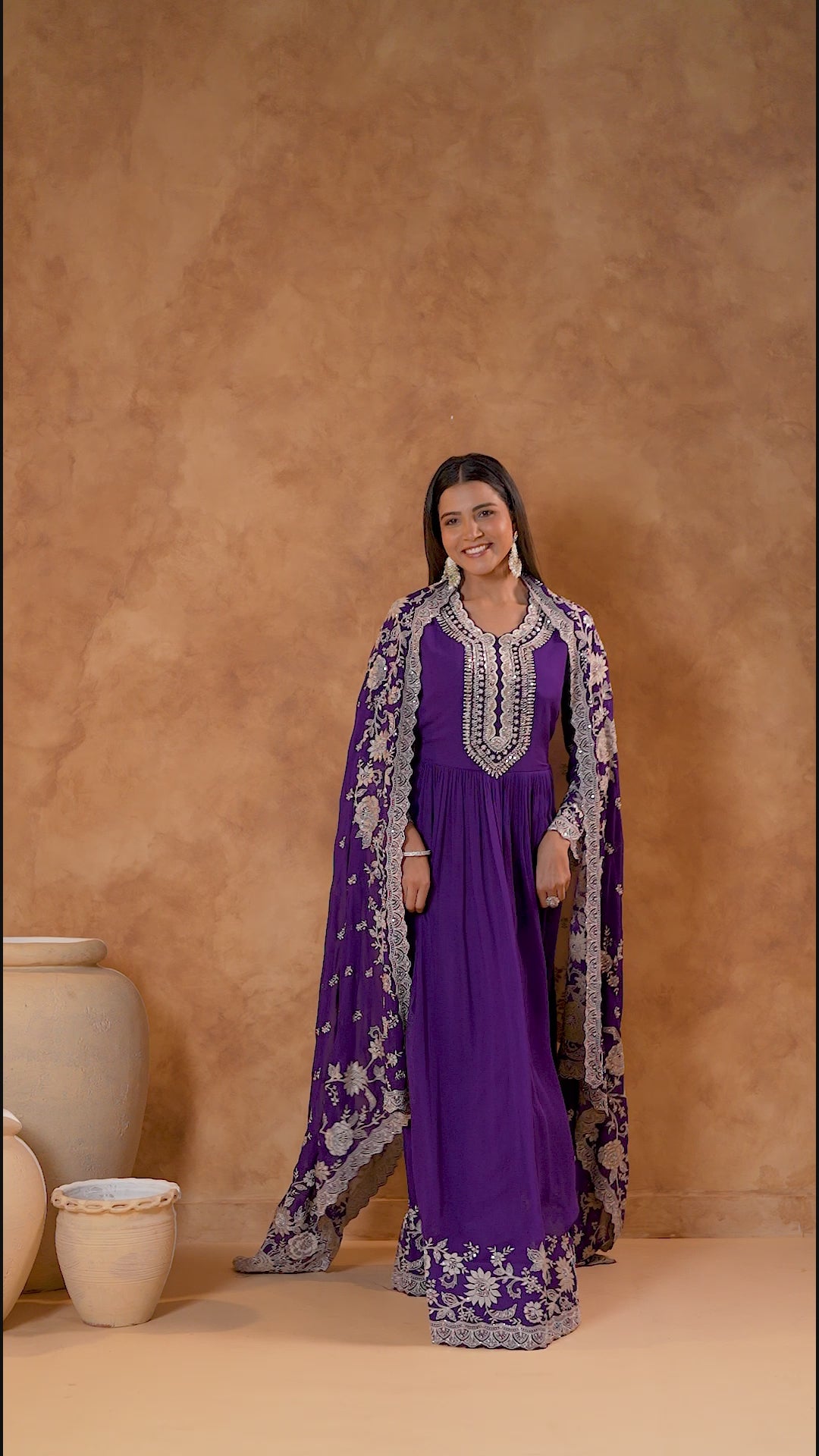 Royal Purple Embellished Georgette Silk Anarkali Set
