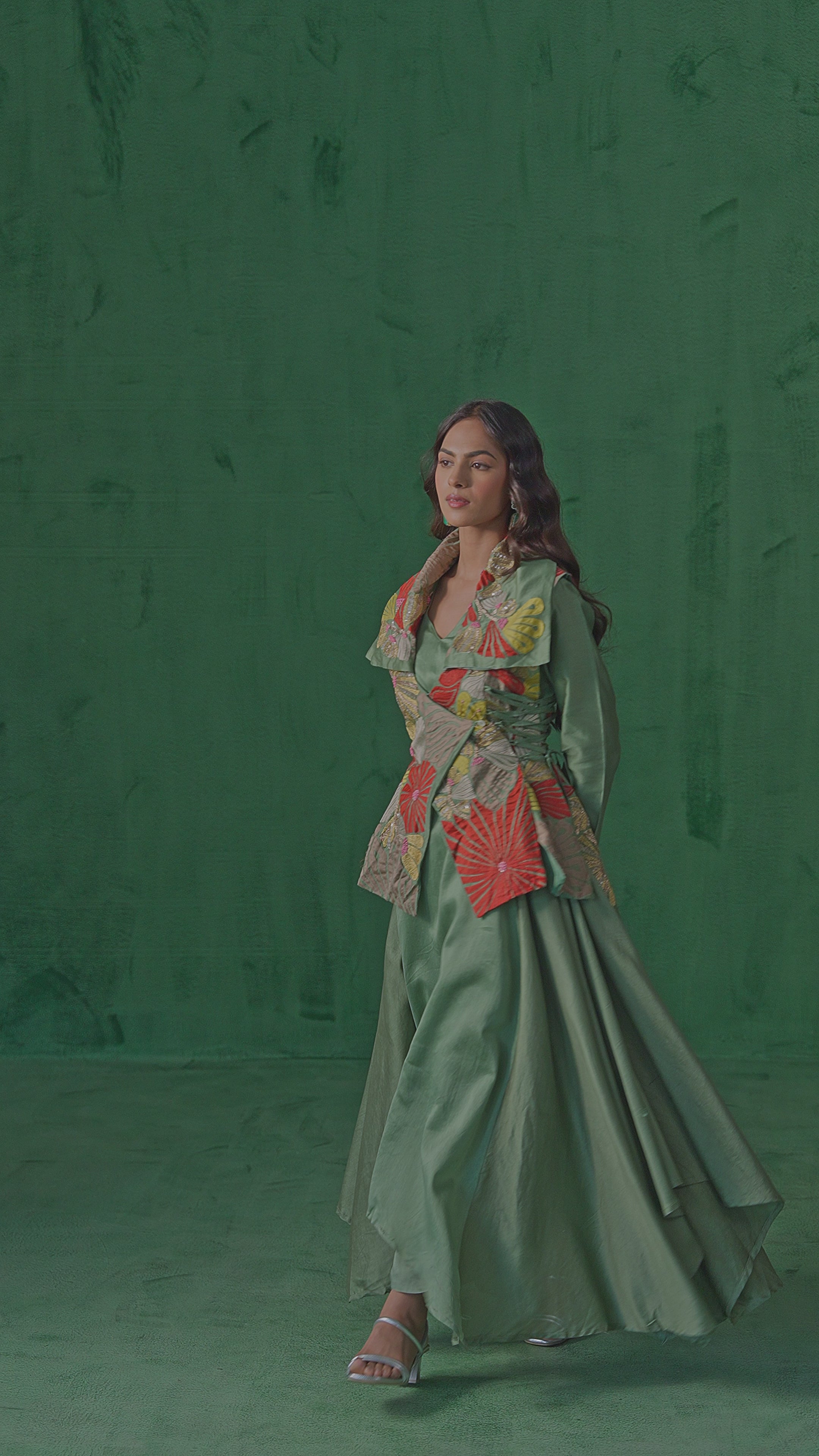Emerald Luxe Embellished Chinon Silk Co-Ord Set