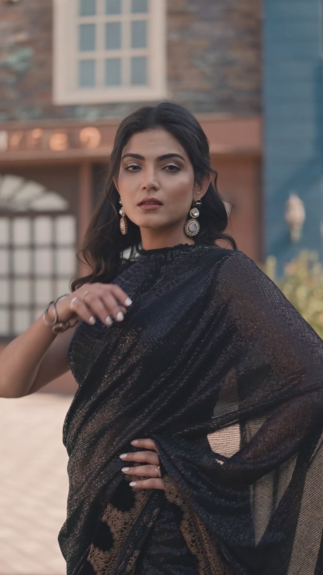 Embrace luxury with the Black Embellished Premium Sequins Velvet Designer Saree, featuring exquisite stone, bead, sequins and aari tari handwork. This stunning saree is paired with a matching Premium Net Silk stitched blouse, offering a perfect fit up to 38 inches with a 42-inch margin for added comfort. The intricate detailing on both the saree and blouse creates a sophisticated, glamorous look. Perfect for weddings, receptions, and special occasions, this saree ensures you stand out with timeless elegance and charm.