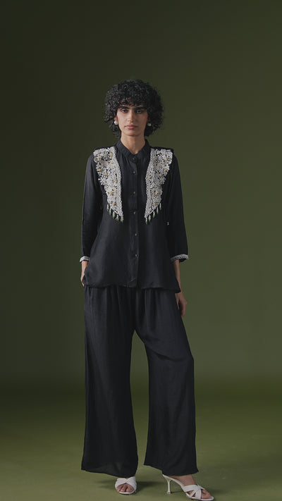 Rich Black Embellished Raw Silk Co-Ord Set