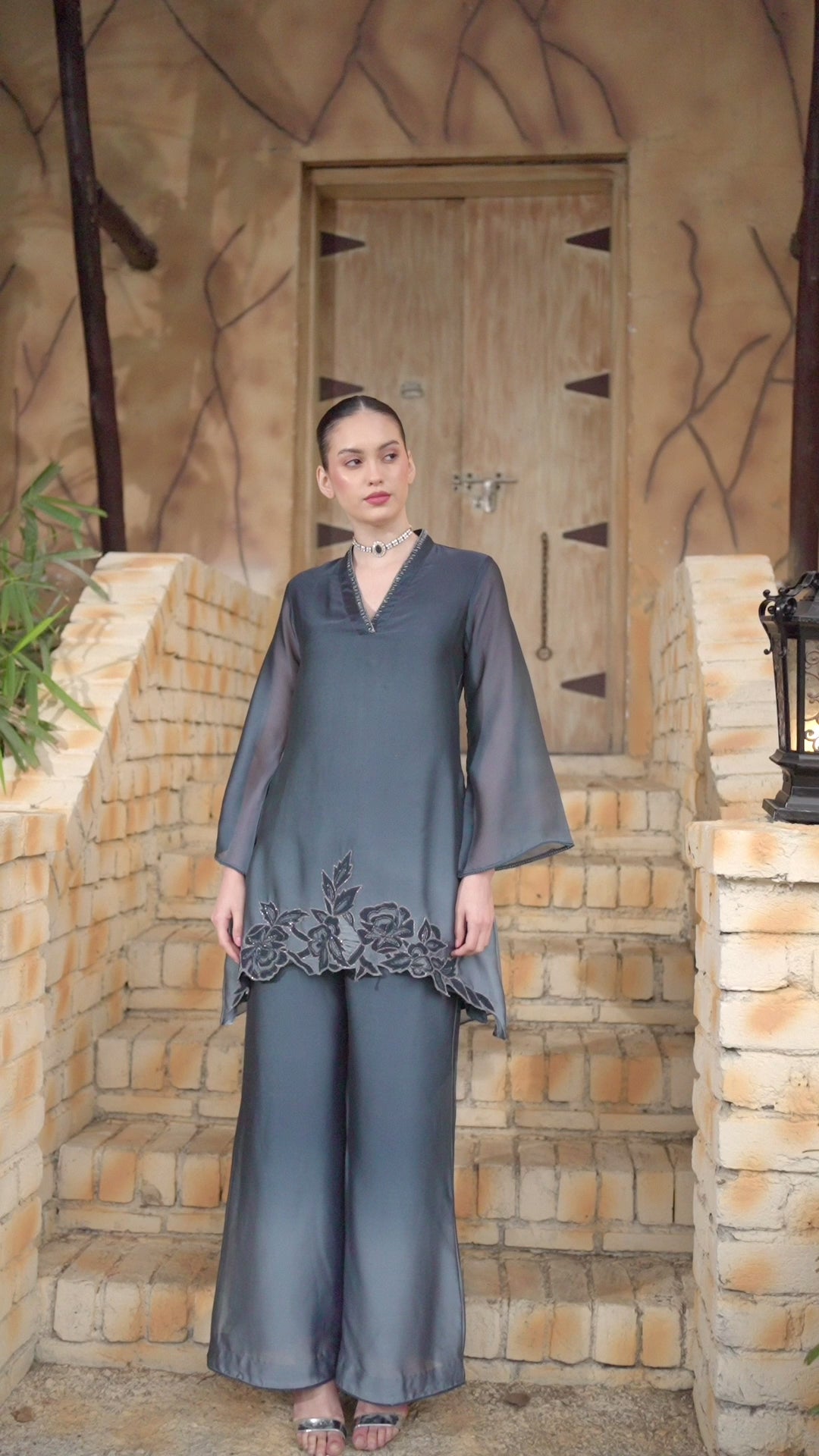 A perfect balance of royal aesthetics and modern cuts. This Incredible Blue Georgette Silk Palazzo Set exudes timeless elegance and grace. The rich textures and intricate work of sequins, beads and zari on kurta ensure a sophisticated look. Paired with matching palazzo pants. Perfect for festive occasions or any special event. This ensemble is a must-have in your collection.