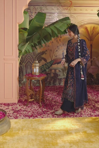Embrace timeless elegance with this beautifully crafted Deep Blue Printed Crepe Silk Palazzo Set. The ensemble features a stylish printed kurta adorned with intricate aari tari, sequins, thread, bead, and stone embellishments—expertly blending traditional detailing with a contemporary silhouette. Paired with matching palazzo pants, the set offers both comfort and sophistication. A lightweight dupatta completes the look, adding a graceful layer to this refined ensemble.