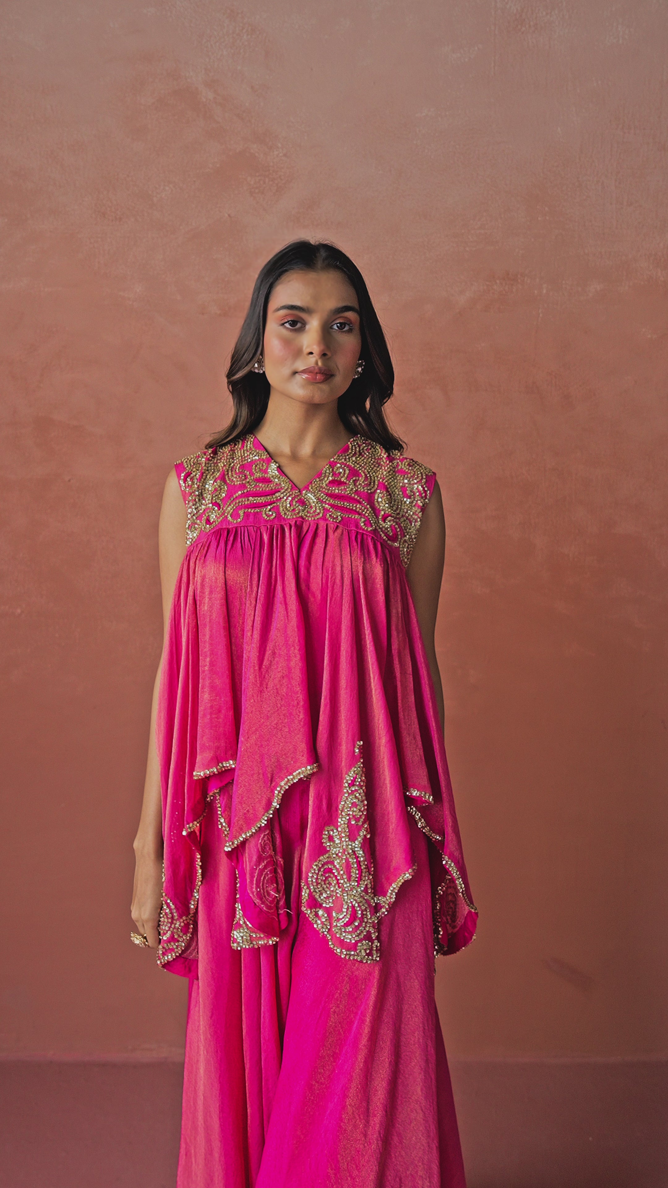 Blush Glimmer Embellished Shimmer Tissue Silk Tunic Set