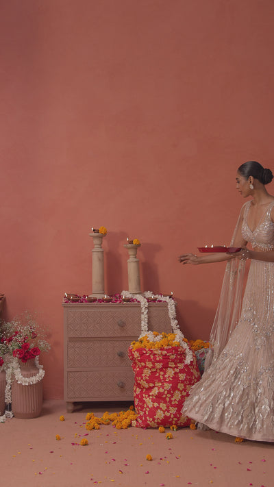 Blush Pink Embellished Premium Mono Net Lehenga Set